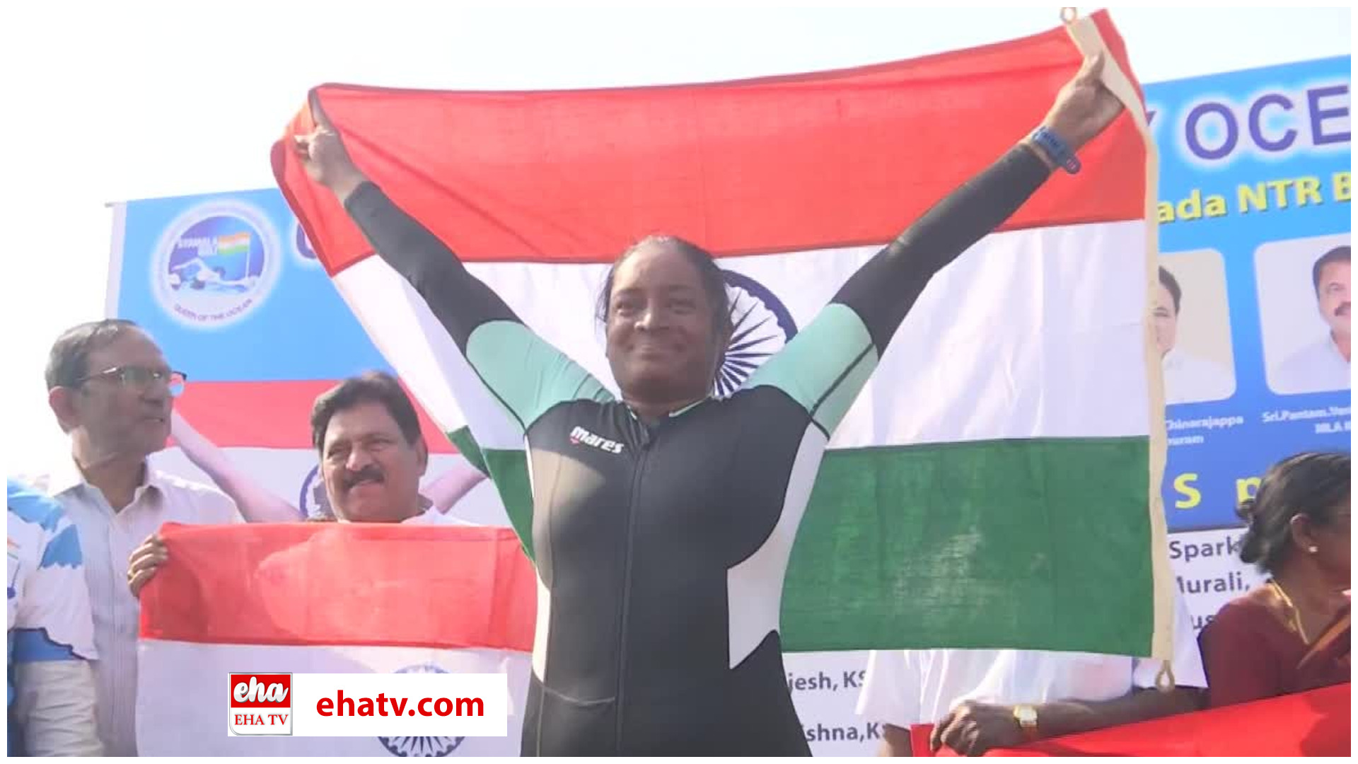 సముద్రంలో 150 కీ.మీ ఈది 52 ఏళ్ల మహిళ రికార్డు సృష్టించింది.