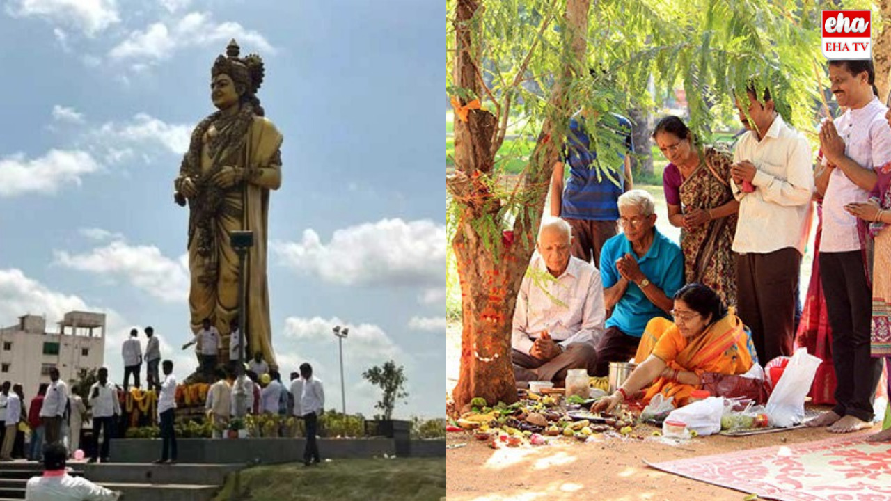 కార్తీక మాసంలో (Karthika masam)వనభోజనాలు జరుగుతుంటాయి. అయితే గతంలో అన్ని కులాల వారు కలిసి వనభోజనాలకు వెళ్లేవారు. కానీ రానురాను అవి కులాల(Cast) వారిగా మారాయి. అన్ని కులాలు వనభోజన మహోత్సవం నిర్వహించడం సాధారణం. కానీ కమ్మవారి(Kamma community) వనభోజనాలు ప్రత్యేకంగా ఉంటాయి.దాదాపు వేలల్లో ఈ వనభోజనాలకు హాజరవుతుంటారు. ప్రతిసారి ఖమ్మం(Khammam) జిల్లాలో నిర్వహించే వనభోజనాలకు మరింత ప్రత్యేకత ఉంది. ఏటా 20-30 వేల మంది హాజరవుతుంటారు. కానీ ఈసారి దాదాపు అంతకు రెట్టింపు సంఖ్యలో 60 వేల మంది వన భోజనాలకు హాజరయ్యారు. ఖమ్మంలో ఆదివారం జరిగిన కమ్మ మహాజన సంఘ వన సమారాధన కార్యక్రమంలో ఎన్టీఆర్కు పూజలు నిర్వహించారు. ఎన్టీఆర్ రాముడు కృష్ణుడి రూపంలో ఉన్న విగ్రహాన్ని ఇక్కడ దేవాలయ సెట్టింగులో ఉంచి పూజలు చేశారు. ఓవైపు వెంకటేశ్వర స్వామి.. మధ్యలో శంకరుడు ఆ పక్కనే కృష్ణుడి రూపంలో ఉన్న ఎన్టీఆర్(NTR) విగ్రహాన్ని ఉంచారు. వెంకటేశ్వర స్వామి, శంకరుడితో పాటు ఎన్టీఆర్కు కూడా పూజలు చేశారు. 2024 అసెంబ్లీ ఎన్నికల్లో ఆంధ్రప్రదేశ్లో టిడిపి అధికారంలోకి రావడం.. చంద్రబాబు ముఖ్యమంత్రి కావడంతో కమ్మ కులస్తులకు మరింత బలం చేకూరిందనే టాక్ నడుస్తోంది. అయితే ప్రతిసారి గొల్లగూడెం రోడ్డులో ఉండే చెరుకూరువారి మామిడితోటలో వనభోజనాలు జరుగుతాయి. అయితే గతంలో ఎప్పుడైనా చెరుకూరు వారి మామిడి తోటలో వన సమారాధన కార్యక్రమాన్ని నిర్వహించేవారు కానీ ఈసారి నిర్వాహకులు వేదికను మార్చారు. వైరా రోడ్ లోని వెలుగుమట్లలో 200 ఎకరాలకు పైగా విస్తీర్ణంలో ఉన్న ఫారెస్ట్ అర్బన్ పార్క్ను వన సమారాధనకు ఎంపిక చేశారు. వేదిక మార్చినా కూడా అనూహ్యంగా దాదాపు 60 వేల మందికిపైగా కమ్మ కులస్తులు రావడం విశేషం.