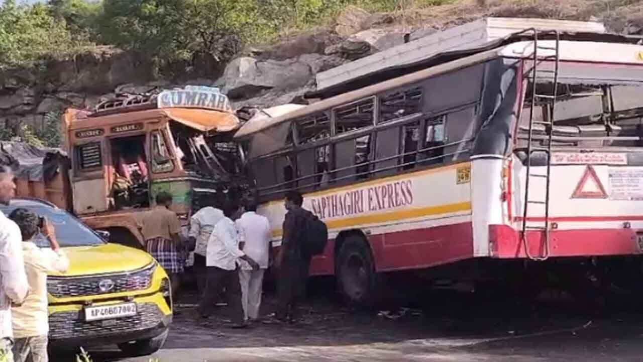 ఆంధ్రప్రదేశ్ రాష్ట్రం చిత్తూరు జిల్లాలో ఘోర రోడ్డు ప్రమాదం సంభవించింది. బస్సు అదుపుతప్పి రెండు లారీలను ఢీకొట్టడంతో ఈ ప్రమాదం జరిగింది