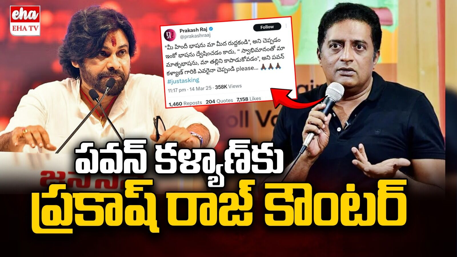 పవన్ కల్యాణ్, ప్రకాష్రాజ్ మధ్య వెండితెరపై ఎన్నో ఫైటింగ్ సీన్లు చూశాం. కానీ ఇప్పుడు రాజకీయరంగంలో కూడా వీరి మధ్య ట్వీట్ల యుద్ధాన్ని చూస్తున్నాం. పవన్ వ్యాఖ్యలపై ఎప్పటికప్పుడు ప్రకాష్రాజ్ ప్రశ్నిస్తూనే ఉన్నారు. పవన్ వ్యాఖ్యలపై వ్యంగ్యాస్త్రాలు వదులుతూనే ఉన్నారు. పిఠాపురం వేదికగా హిందీ భాషపై పవన్ చేసిన వ్యాఖ్యలపై తాజాగా మరోసారి ప్రకాష్రాజ్ స్పందించారు. హిందీ భాష, తమిళ సినిమాల డబ్బింగ్పై పవన్ చేసిన కామెంట్స్కు ప్రకాష్ రాజ్ కౌంటర్ ఇచ్చారు. “తమిళ సినిమాలను హిందీలోకి డబ్ చేయొద్దని” పవన్ కల్యాణ్ చేసిన వ్యాఖ్యలపై స్పందిస్తూ.. “మీ హిందీ భాషను మా మీద రుద్దకండి.. ఇది ఇంకో భాషను ద్వేషించడం కాదు. స్వాభిమానంతో మా మాతృభాషను, మా తల్లిని కాపాడుకోవడమే,” అంటూ పవన్ కల్యాణ్కు ఎవరైనా చెప్పండి ప్లీజ్.. అంటూ ట్వీట్ చేశారు. #justasking హ్యాష్ట్యాగ్తో చేసిన ఈ ట్వీట్ ట్రెండింగ్ అవుతోంది. దీనిపై పవన్ ఫ్యాన్స్ ఆగ్రహం వ్యక్తం చేస్తుండగా హిందీని వ్యతిరేకించేవారు మాత్రం ప్రకాష్రాజ్కు మద్దతుగా నిలుస్తున్నారు.