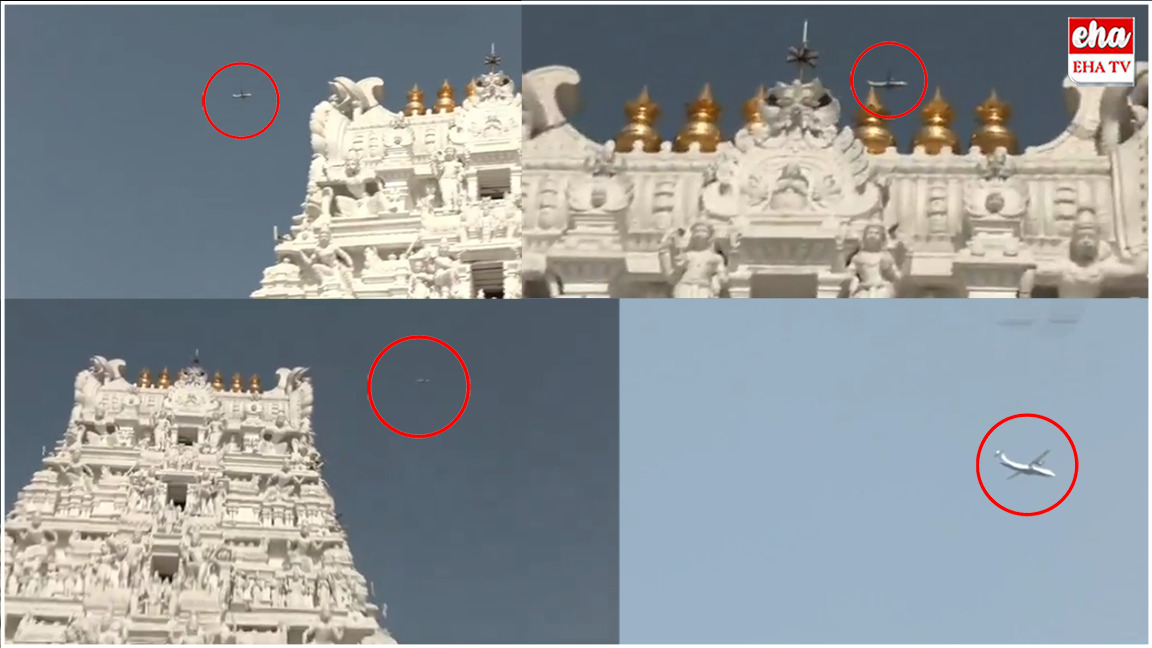 జూన్ 1, 2025 ఉదయం 9 గంటల సమయంలో, తిరుమల శ్రీవారి ఆలయ గోపురం పైన అతి తక్కువ ఎత్తులో ఒక విమానం ఎగిరినట్లు స్థానికులు మరియు భక్తులు గమనించారు. ఈ ఘటన సోషల్ మీడియాలో వైరల్గా మారింది, ఎక్స్ ప్లాట్ఫామ్లో పలు పోస్ట్లు ఈ సంఘటనను హైలైట్ చేశాయి. ఆగమ శాస్త్రం ప్రకారం, శ్రీవారి ఆలయం పైన విమానాలు లేదా ఇతర లోహ వస్తువులు ఎగరడం ఆలయ పవిత్రతను భంగం కలిగించే చర్యగా పరిగణించబడుతుంది. ఈ నిబంధనలను ఉల్లంఘిస్తూ విమానాలు తరచూ ఆలయం పైన ఎగురుతుండటంతో భక్తులు ఆందోళన వ్యక్తం చేస్తున్నారు.