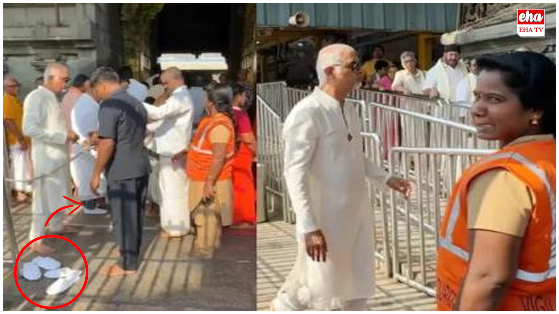 తిరుమలలో మరో అపచారం వెలుగులోకి వచ్చింది. శ్రీవారి దర్శనానికి ముగ్గురు భక్తులు పాదరక్షలతో మహా ద్వారం వరకు రావడం చర్చనీయాంశమైంది.