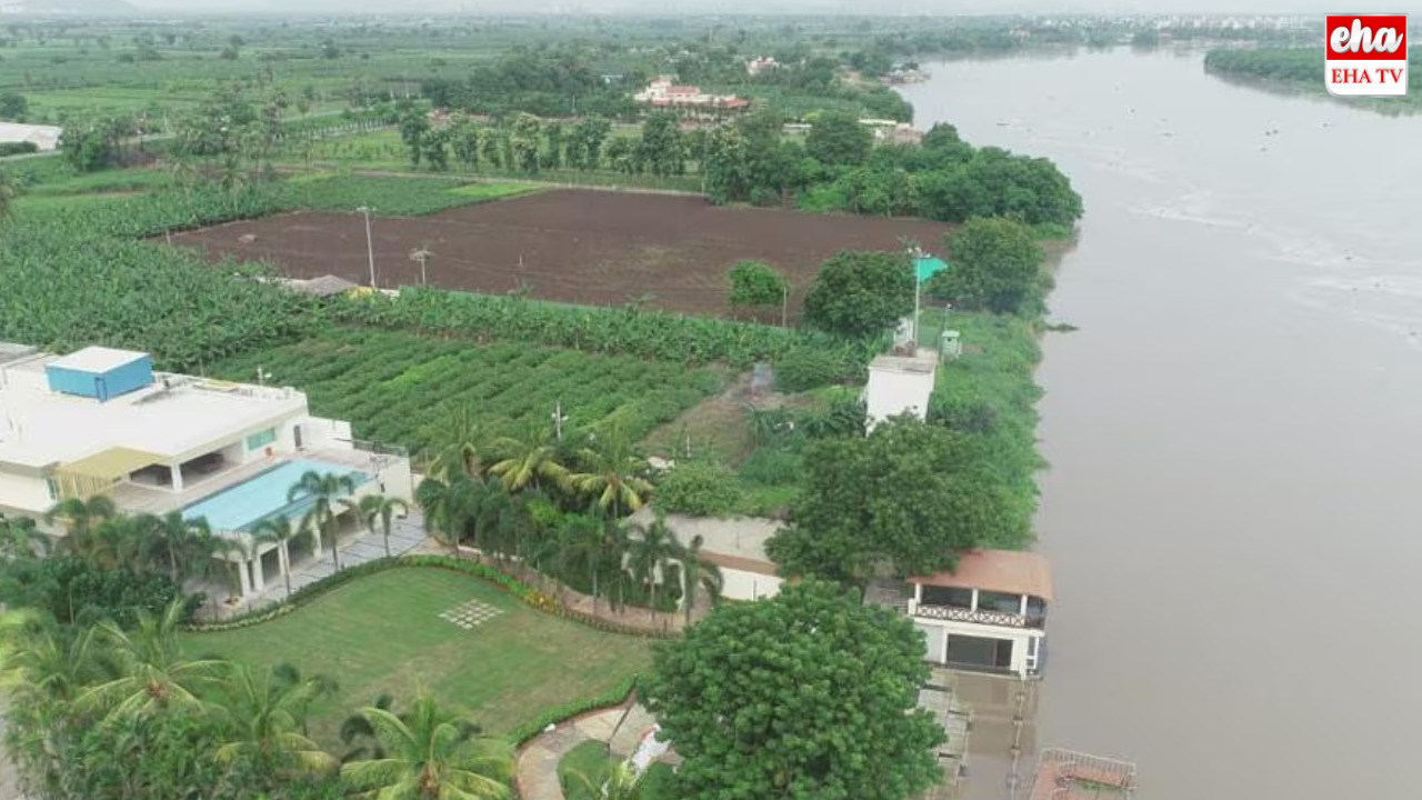 ప్రకాశం బ్యారేజ్(Prakasam Barrege)కు ఎన్నడూ లేనంతగా వరద నీరు వచ్చి చేరుతోంది. ప్రస్తుతం వరద ఇన్ఫ్లో, ఔట్ ఫ్లో 11.43 లక్షల క్యూసెక్కులు దాటింది. దీంతో కరకట్ట (Karakatta)మీదగా నీరు ప్రవహిస్తోంది. అక్కడ ఉన్న ముఖ్యమంత్రి చంద్రబాబునాయుడు(CM Chandra Babu Naidu) నివాసంలోకి కూడా నీరు వెళ్లింది. నీరు లోపలికి రాకుండా అధికారులు లారీలతో ఇసుక తరలించి అడ్డుపెట్టారు కానీ వరద ప్రవాహాన్ని ఆపలేకపోయారు. చంద్రబాబు ఇంటి లోపలికి చేరిన నీటిని ఆరుకు పైగా మెటార్లను ఉపయోగించి బయటకు పంపే ప్రయత్నం చేస్తున్నారు. ఆదివారం రాత్రి 7 గంటల సమయంలో ప్రకాశం బ్యారేజ్లోకి చేరుతున్న ప్రవాహం 9,17,976 క్యూసెక్కులకు చేరడంతో కృష్ణా నది(Krishna River) కరకట్ట లోపల ఉన్న చంద్రబాబు ఇంటిని వరద చుట్టుముట్టింది. ఇందులోనే నారా లోకేశ్(Nara Lokesh) గెస్ట్ హౌస్గా చెప్పుకునే అప్పారావు బంగ్లా కూడా ఉంది. ఇక్కడ కూడా ఇసుక బస్తాలు వేసి వరద నీరు లోపలికి రాకుండా ఆపే ప్రయత్నం చేశారు కానీ వారి వల్ల కాలేదు. ఆదివారం రాత్రి కృష్ణా నది వరద ఉధృతి మరింత పెరుగుతుందని, రాత్రికి అక్కడ ఉంటే ప్రమాదమని చంద్రబాబుకు జలవనరుల శాఖ అధికారులు చెప్పడంతో ఆదివారం రాత్రి విజయవాడలోని ఎన్టీఆర్ జిల్లా కలెక్టర్ కార్యాలయానికి షిఫ్ట్ అయ్యారు చంద్రబాబునాయుడు.