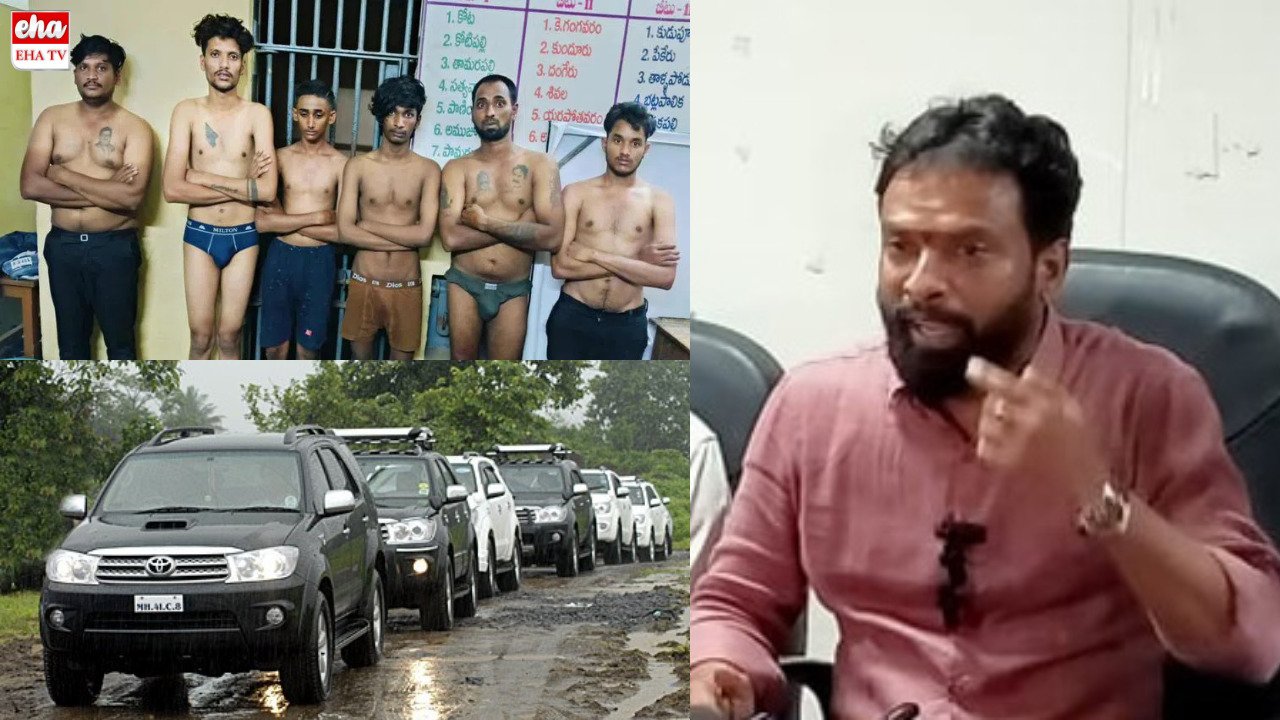 తాగేతే తాగారు కానీ గొడవలు గట్రాలు చేయకుండా గమ్మునుండాలి. తాగితే తమంతటి తోపులు ఉండరనుకుంటారు. ఎక్కడాలేని ధైర్యం వచ్చేస్తుంది. ఆ దమ్ముతోనే మందుబాబులు వీరంగం సృష్టించారు. కోనసీమ(Konaseema) జిల్లా కె.గంగవరం మండలం మసకపల్లిలో ఈ ఘటన జరిగింది. మంత్రి వాసంశెట్టి సుభాష్(Vasam Shetty subash) కాన్వాయ్నే ఆపేశారు. గంజాయి మత్తులో(Weed toxication) వారికి ఏం చేస్తున్నామో కూడా తెలియలేదు. మేం కాపులం. ఎవడ్రా నువ్వు అంటూ రెచ్చిపోయారు. వరద బాధితులను పరామర్శించడానికి వచ్చిన మంత్రిని నానా మాటలనేశారు. పోలీసులు గమ్మునుండరు కదా! ఆ ఆరుగురుని అదుపులోకి తీసుకుని ఫోటోలో చూపించినట్టుగా స్టేషన్లో నిలబెట్టారు. వీరందరూ రాజమండ్రికి చెందిన వారని తేలింది. చిత్రమేమిటంటే మందు తాగకుండా మట్లపాలెం వెళ్లి కడియాలు వేసుకున్నారు. యానాంకు వెళ్లి ఆ కడియాలు తీసేసి పీకల్దాక మందుతాగారు.
