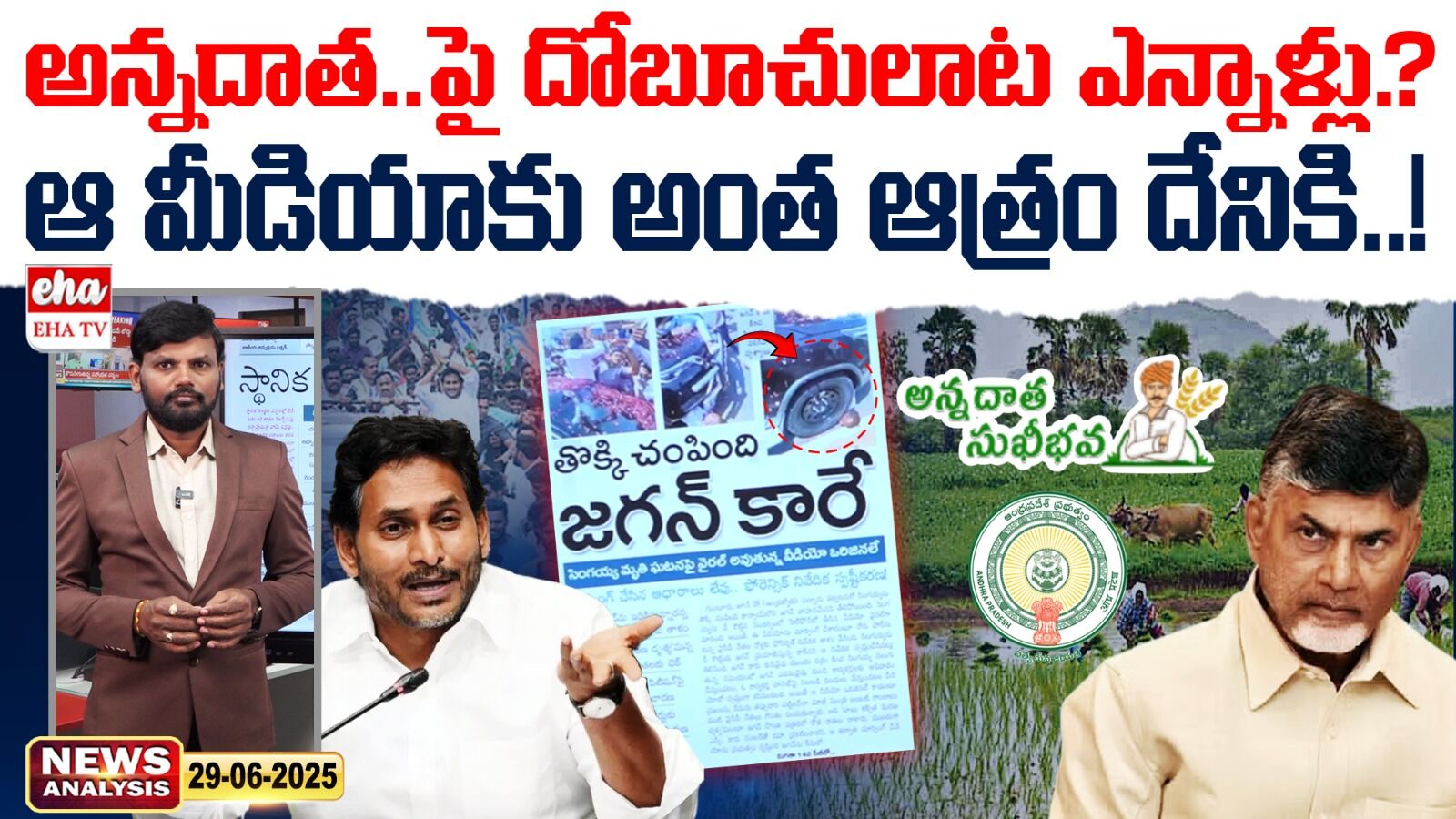 హలో నమస్తే నేను జర్నలిస్ట్ శ్రీనివాస్ ఈరోజు న్యూస్ ఎనాలిసిస్ లో ముందుగా ప్రజాశక్తి పేపర్లో వార్తల్ని చూద్దాం అన్నదాత దోబుచిలాట రేపు మాపు అని ఊరింపు పీఎం కిసాన్ ఎప్పుడో అప్పుడేనని కొత్త పల్లవి ఇంకా కరారు గాని మార్గదర్శకాలు కౌలుదారులకు ఇప్పుడే కాదని లీకులు వర్షాలతో కరీబ్ పెట్టుబల కోసం రైతుల ఎదురుచూపులు గైడ్లైన్స్ లేకుండానే తెలుగుదేశం పార్టీకి సంబంధించిన ప్రభుత్వం కూటమి ప్రభుత్వం రైతులకు పెట్టుబడి స్థాయం అందించేందుకు ఉద్దేశించిన అన్నదాత సుఖీభవ అని ఒక ప్రోగ్రాం పెట్టింది అంటే జగన్మోహన్ రెడ్డి రైతు భరోసా అంటే దాన్నే పేరు మార్చింది పేరైతే మార్చారు కానీ ఒక రూపాయి రాలేదు రైతులు కళ్ళు కాచేదాకా ఎదురు చూడటం తప్ప ఇక్కడ ఏం జరగలే దీని గురించి ఒక్క పత్రిక కూడా రాయట్లే వార్త ఒక్కటంటే ఒక పత్రిక ఆంధ్రజ్యోతి గాని ఈనాడు గాని ఆంధ్రప్రభ గాని దిశా పేపర్ గాని ఏ పత్రిక రాయట్లే దాదాపు 47 లక్షల మంది రైతులకు సంబంధించిన వ్యవహారం అంటే వాస్తవంగా జగన్మోహన్ రెడ్డి ఇచ్చినప్పుడు 53 లక్షల58000 మందికి ఇచ్చిండు దాన్ని తగ్గించారు 47లక్షల 77000 వేల మందికి సంబంధించిన ఎదురుచూపులు వాళ్ళ బాధ వాళ్ళ ఆవేదన వాళ్ళకు రావల్సిన పెట్టుబడి సాయం ఆల్రెడీ వర్షాకాలం సీజన్ స్టార్ట్ అయింది దాని గురించి ఏ పత్రికకి ఏ టీవీ ఛానల్ కి అవసరం లేదు అన్నట్టు ఏదో ప్రజాశక్తి లాంటి పేపర్లు అప్పుడప్పుడు సాక్షి పేపర్ రాస్తాం తప్ప మిగతా ఏ పేపర్ రాయట్లేదు అంటే ప్రజల గురించి పత్రికలు టీవీ ఛానల్ వార్తలు వేయటం మర్చిపోయినాయి కేవలం పార్టీలు సామాజిక వర్గాలు వాళ్ళ వాళ్ళ ఎజెండా ప్రకారం వార్తలు వేస్తున్నాయి.. పూర్తి విశ్లేషణ వీడియోలో చూద్దాం...