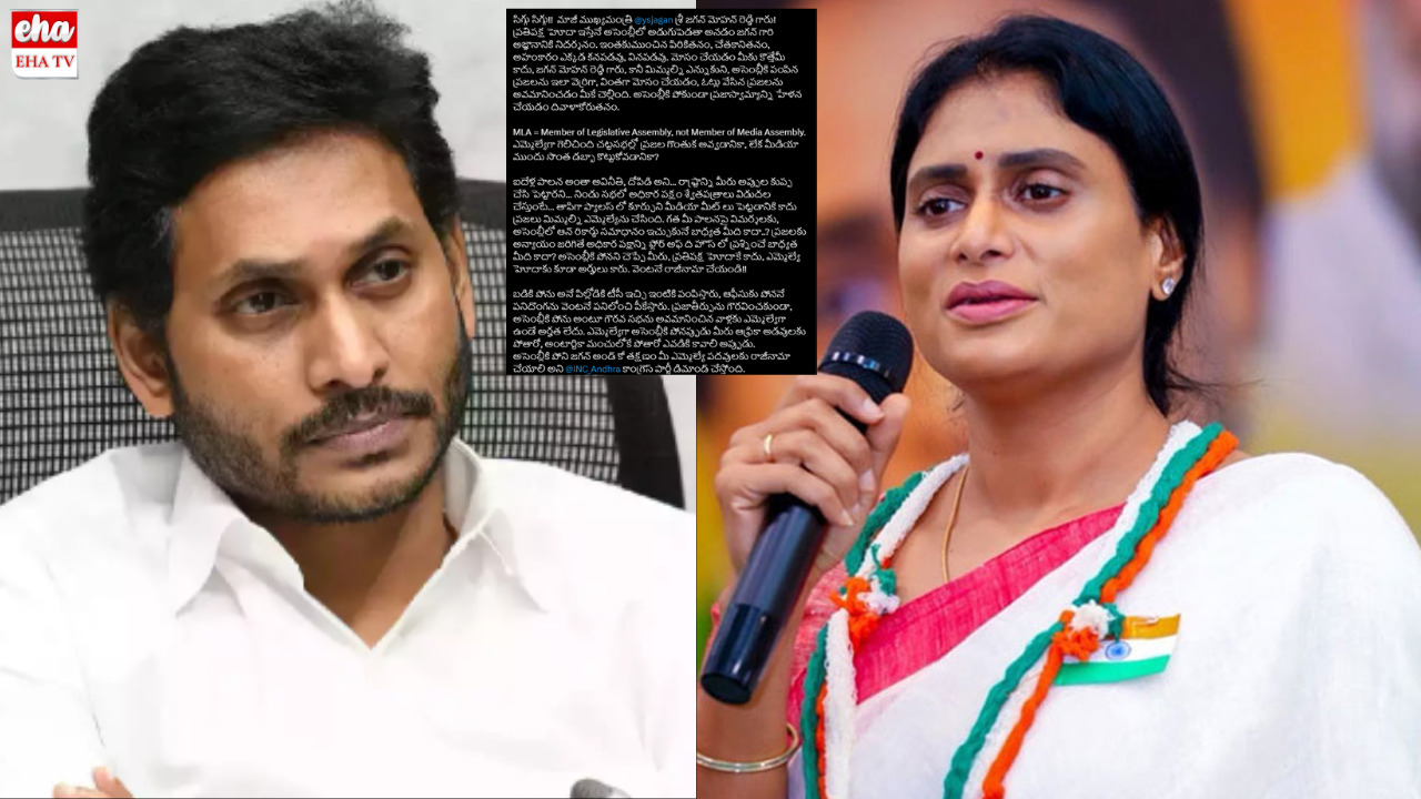 ప్రతిపక్ష హోదా ఇవ్వకుంటే అసెంబ్లీకి(Assembly) వెళ్లనని జగన్ చెప్పడం సిగ్గు చేటని, చేతకానితనమని, అసలు ఎమ్మెల్యే పదవికి జగన్ అర్హుడు కాడని, వెంటనే రాజీనామా చేయాలని,వై.ఎస్.షర్మిల(Appcc YS Sharmila) ట్వీట్ చేసిన విషయం తెలిసిందే.