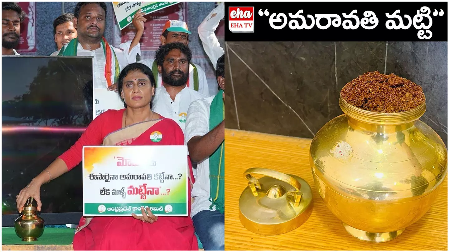 ఇప్పుడు రాజధాని పునఃశంకుస్థాపనకు వస్తున్న మోడీ గారికి ఇదే అమరావతి మట్టిని బహుమతిగా పంపిస్తున్నాం. ఈ మట్టిని చూసిన ప్రతిసారి 2015లో తొలి శంకుస్థాపనలో ఇచ్చిన హామీలు గుర్తు రావాలి.10 ఏళ్లుగా చేసిన మోసంపై ఆత్మ విమర్శ చేసుకోవాలి అని షర్మిల అన్నారు.
