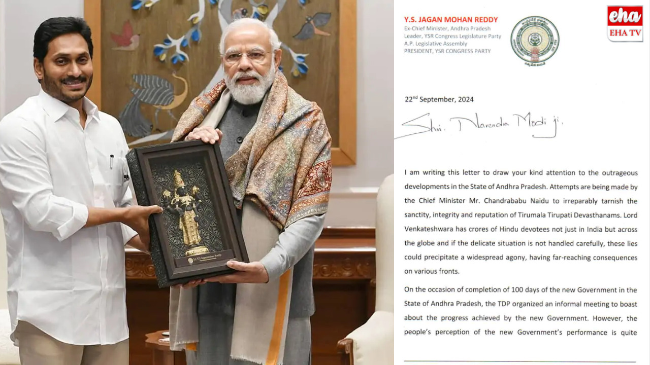 రాజకీయ స్వార్థంతో నారా చంద్రబాబునాయుడు(Chandrababu Naidu) తిరుమల తిరుపతి దేవస్థానం(TTD) ప్రతిష్టను దిగజార్చారంటూ ప్రధానమంత్రి నరేంద్రమోదీకి(Narendra Modi) వైఎస్ఆర్ కాంగ్రెస్ పార్టీ(YSRCP) అధ్యక్షుడు జగన్మోహన్రెడ్డి(YS Jagan) లేఖ(Letter) రాశారు. 'స్వామివారి కోట్లాది మంది భక్తుల మనోభావాలు దెబ్బతిన్నాయి. సున్నితమైన అంశాన్ని రాజకీయ అవసరాల కోసం వాడుకున్నారు. ముఖ్యమంత్రి పదవి ప్రతిష్టను దిగజార్చే విధంగా వ్యవహరించారు. టీటీడీ సంప్రదాయాలపై అనుమానాలు పెంచే విధంగా మాట్లాడారు. తిరుమల తిరుపతి దేవస్థానం ప్రతిష్టను దిగజార్చిన చంద్రబాబుకు బుద్ధి చెప్పాలి' అని లేఖలో జగన్మోహన్రెడ్డి డిమాండ్ చేశారు. లడ్డూ వివాదంలో నిజాలు ప్రపంచానికి తెలియాలి. వాస్తవాలు నిగ్గు తేల్చాలని ప్రధానమంత్రికి లేఖ రాశారు.