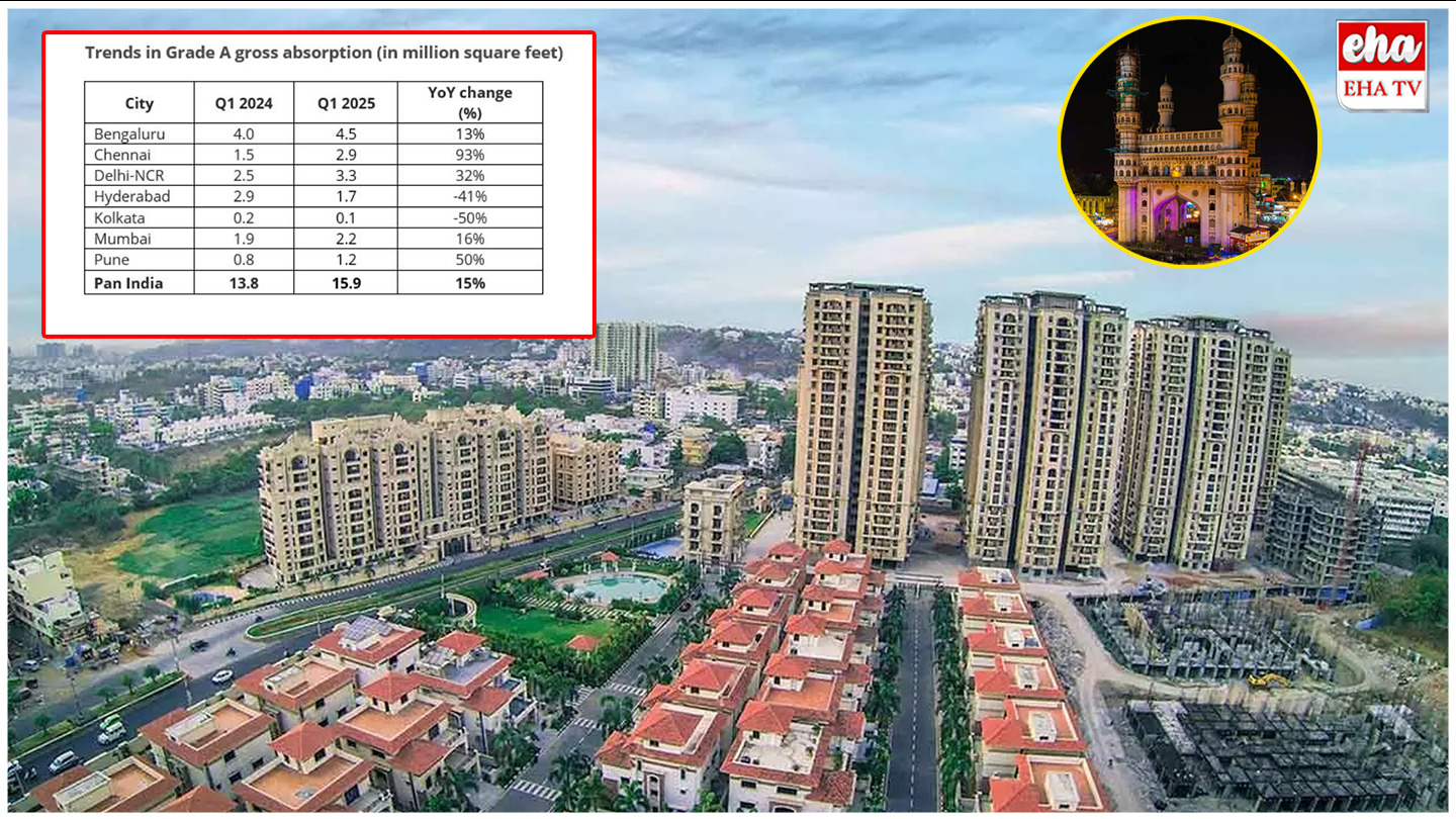జనవరి-మార్చి మధ్య 41 శాతం పడిపోయిన ఆఫీస్ లీజింగ్. దేశవ్యాప్తంగా టాప్-7 నగరాల్లో ఈ ఏడాది తొలి మూడు నెలల కాలంలో ఆఫీస్ వసతుల లీజింగ్ మెరుగైన వృద్ధిని చూడగా.. హైదరాబాద్, కోల్కతా పట్టణాల్లో క్షీణించిన ఆఫీస్ లీజింగ్. జనవరి-మార్చి త్రైమాసికంలో ఇప్పటి వరకు నమోదైన లావాదేవీల ఆధారంగా ఒక నివేదికను విడుదల చేసిన రియల్ ఎస్టేట్ కన్సల్టెంట్ 'కొలియర్స్ ఇండియా'.టాప్-7 నగరాల్లో స్థూలంగా 159 లక్షల చదరపు అడుగుల మేర (ఎస్ఎఫ్) ఆఫీస్ లీజింగ్ లావాదేవీలు జరగగా.. క్రితం ఏడాది మొదటి మూడు నెలల కాలంలోని లీజింగ్ 138 లక్షల (SF)తో పోల్చి చూస్తే 15 శాతం వృద్ధి నమోదై.. దేశ, విదేశీ కంపెనీల నుంచి బలమైన డిమాండ్ కనిపించింది. హైదరాబాద్లో 17 లక్షల చదరపు అడుగుల లీజింగ్ లావాదేవీలు జరగగా.. క్రితం ఏడాది మొదటి మూడు నెలల్లో లీజింగ్ 29 లక్షలతో పోల్చి చూస్తే 41 శాతం తగ్గినట్టు తెలుస్తోంది.