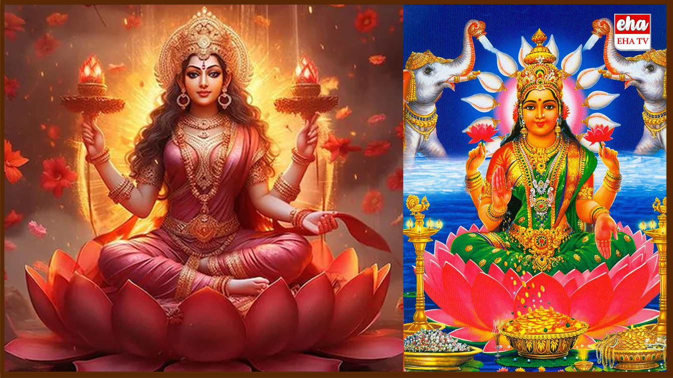 అధికంగా లక్ష్మీదేవి చతుర్భుజాలతోను, ధన కుంభంతోను, పద్మాసనగా, పద్మాలను చేతబట్టి, సకలాభరణ భూషితయైనట్లుగా చిత్రించబడుతుంది. లక్ష్మీ దేవి వాహనం గుడ్లగూబ.
