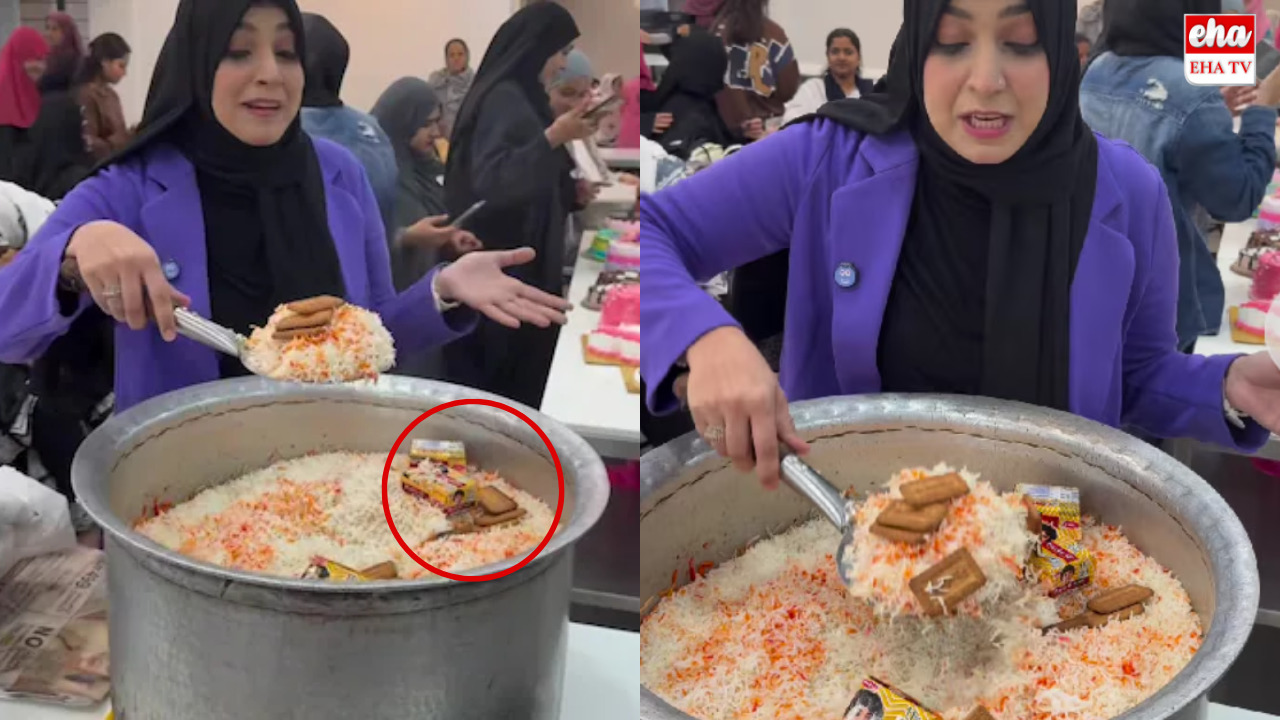 మాంసాహార వంటకాల్లో, భోజన ప్రియుల హృదయాల్లో బిర్యానీకి(Biryani) ప్రత్యేక స్థానం ఉంది. సువాసన, సువాసనగల సుగంధ ద్రవ్యాలు, లేత మాంసం ముక్కలకు బిర్యానీకి ఉపయోగిస్తారు. చికెన్(chicken), మటన్(Mutton), ఫిష్(Fish), ప్రాన్స్(Prawns), వెజ్ బిర్యానీలంటే(Veg biryani) అందరికీ ఇష్టం. హైదరాబాద్, లక్నో, కోల్కతా, దక్షిణ భారత ఇది సాంస్కృతిక మరియు భౌగోళిక సరిహద్దులను అధిగమించే వంటకం. అయితే బిర్యానీ అభిమానులకు కోపం తెప్పించేంత అసాధారణమైన బిర్యానీని ఎవరైనా తయారు చేసింది. పార్లే జి బిస్కట్లతో బిర్యానీని(Parle-G Biryani) తయారు చేసిన వీడియో వైరల్గా మారాయి. పార్లే-జి బిస్కెట్లు తినడం ఇష్టమే ఉండొచ్చు కానీ వాటి ద్వారా బిర్యానీ తయారుచేయడమే జుగుప్సాకరంగా ఉంది. ఓ ఇన్స్టాగ్రామ్ యూజర్ ఇటీవలే ఆమె సాంప్రదాయేతర బిర్యానీతో పార్లే-జి బిస్కెట్లను డిష్లో చేర్చడం ద్వారా సోషల్ మీడియాలో తుఫాన్ సృష్టించింది. వైరల్ వీడియోలో, ఆమె బిర్యానీ యొక్క పెద్ద పాత్రను చూపెడుతుంది. అందులో పార్లే-జి బిస్కెట్లు బిర్యానీలో కనిపిస్తాయి. ఆశ్చర్యానికి గురిచేస్తూ, హీనా బిస్కెట్లను కూడా గ్రౌండ్ చేసి, వాటిని మసాలా దినుసులలో మిళితం చేసి, సాంప్రదాయ బిర్యానీకి తీపిని కూడా జోడించింది. ఇదెక్కడి బిర్యానీ రా మావా.. అంటూ ముక్కున వేలేసుకుంటున్నారు అసలైన బిర్యానీ ప్రేమికులు