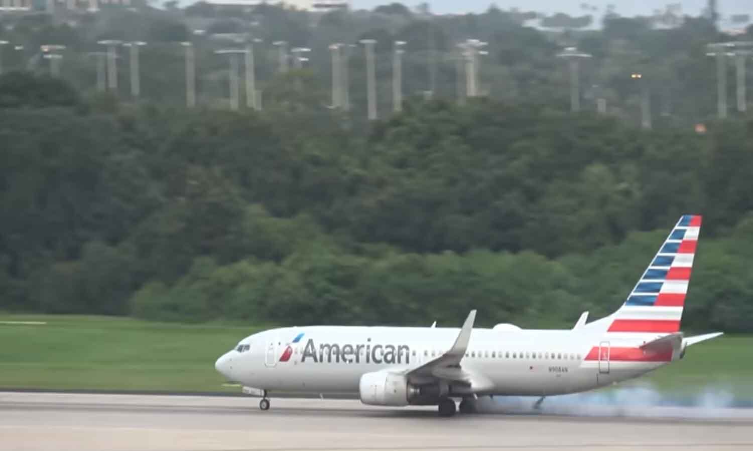 USలోని ఫ్లోరిడా విమానాశ్రయం నుండి ఫియోనిక్స్కు వెళ్తున్న అమెరికన్ ఎయిర్లైన్స్ విమానానికి తృటిలో పెను ప్రమాదం తప్పింది. టేకాఫ్ అయ్యే కొద్ది క్షణాల ముందు రన్వేపై విమానంలోని టైర్లలో ఒకటి పేలిపోయింది. ఫ్లైట్ 590 టాంపా ఇంటర్నేషనల్ ఎయిర్పోర్ట్లో ఉదయం 8 గంటలకు (స్థానిక కాలమానం ప్రకారం) టేకాఫ్ అయ్యే ముందు ఈ ఘటన చోటు చేసుకుంది. టైర్ పేలిన వీడియో రికార్డు కూడా అయింది. అకస్మాత్తుగా, టైర్ పేలడంతో మంటలు వ్యాపించాయి, అక్కడ పొగ కూడా కమ్ముకోవడం మనం వీడియోలో చూడొచ్చు. టైర్ పేలుడు సంభవించినప్పటికీ కొంత దూరం విమానం వెళ్ళింది.. విషయాన్ని గమనించిన పైలట్ విమానాన్ని ఆపేశాడు. అత్యవసర సహాయక సిబ్బందికి సంబంధించిన వాహనాలు అక్కడికి చేరుకున్నాయి.