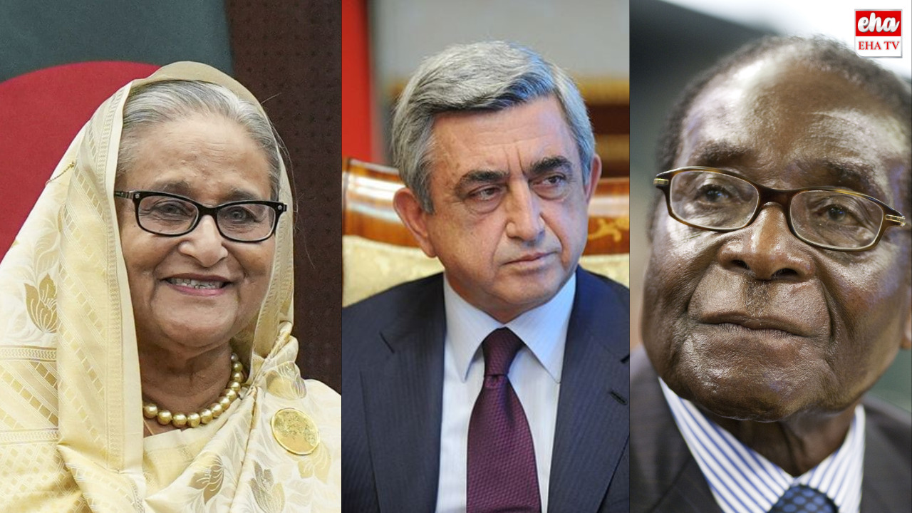ప్రభుత్వ ఉద్యోగాల్లో రిజర్వేషన్ కోటాకు సంబంధించి విద్యార్థులు పెద్ద ఎత్తున ఆందోళనలు చేయడంతో పదవి వదిలిపెట్టి దేశం విడిచి పారిపోవాల్సి వచ్చింది. ఇలా ప్రజల ఆందోళనలతో దేశాధినేతలు పదవి కోల్పోవడం ఇదేం మొదటి సారి కాదు. రెండు దశాబ్దాలలో వివిధ దేశాలకు చెందిన పది మంది అధినేతలు ఇలాగే తమ పదవులను వదిలిపెట్టారు. రెండేళ్ల కిందట అంటే 2022లో శ్రీలంక అధ్యక్షుడు రాజపక్సేకు ఇదే గతి పట్టింది. ఆర్థిక సంక్షోభంలో శ్రీలంక చిక్కుకుపోవడంతో నిరసన జ్వాలలు మిన్నంటాయి. అధ్యక్షుడు గోటబయ రాజపక్సే అధికార నివాసాన్ని ప్రజలు చుట్టుముట్టారు. దెబ్బకు దేశం విడిచిపారిపోయారు రాజపక్సే. బంగ్లాదేశ్లోలాగే రాజపక్సే ఇంట్లోకి జనం దూసుకెళ్లారు. 2018లో ఆర్మేనియాలో ప్రజలు తిరుగుబాటు చేశారు. ప్రధానమంత్రి సెర్జ్ సార్గిసన్(Serge Sarkisian) పాలనపై జనాల్లో తీవ్ర అసంతృప్తి ఏర్పడింది. అది ఆగ్రహంగా మారింది. ఏప్రిల్ 23న నిరసనకారులు, సైన్యం కలిసి సెర్జ్ సార్గిసన్ను పదవి నుంచి తప్పించాయి. 2017లో జింబాబ్వే అధ్యక్షుడు రాబర్ట్ ముగాబే(Robert mugabe) కూడా జనాగ్రహాన్ని చవిచూశారు. 2017 నవంబర్లో దేశంలో పెద్ద ఎత్తున నిరసనలు చోటు చేసుకున్నాయి. సైన్యం జోక్యం చేసుకోవాల్సి వచ్చింది. ముగాబేతో సైన్యం బలవంతంగా రాజీనామా చేయించింది. 2013లో బల్గేరియాలో విద్యుత్ బిల్లులకు వ్యతిరేకంగా పెద్ద ఉద్యమం నడిచింది. ప్రధానమంత్రి బోరిసోవ్ను జనం ఈసడించుకున్నారు. ఆందోళన చేశారు. ఉద్యమాలు చేశారు. ఫలితంగా ఫిబ్రవరిలో బోరిసోవ్ రాజీనామా చేశారు. అప్పుడు జనం శాంతించారు. 2011లో ఈజిప్ట్లో పాలనాధినేత హోస్ని ముబారక్ను ప్రజలు గద్దె దించారు. ప్రజా ఆందోళనలకు జడిసిన ముబారక్ ఫిబ్రవరిలో పదవి నుంచి తప్పుకున్నాడు. అదే ఏడాది ట్యునీషియాలోనూ తిరుగుబాటు జరిగింది. పెరిగిపోతున్న నిరుద్యోగం, అధిక ధరలకు వ్యతిరేకంగా జనం రోడ్ల మీదకు వచ్చారు. దేశమంతటా నిరసనజ్వాలలు చెలరేగాయి. దాంతో జనవరి 15న అధ్యక్షపదవికి అబిదిన్ బెన్ అలీ రాజీనామా చేసి బతుకు జీవుడా అనుకుటూ సౌదీ అరేబియాకు పారిపోయాడు. 2009లో ఐస్ల్యాండ్ ప్రధానమంత్రి హార్డే అనాలోచిత నిర్ణయాలు తీసుకున్నాడు. ఫలితంగా దేశ కరెన్సీ, బ్యాంకింగ్ వ్యవస్థ కుప్పకూలింది. ప్రజలు పెద్ద ఎత్తున ఆందోళనలకు దిగడంతో ప్రధానమంత్రి పదవికి హార్డే రాజీనామా చేశారు. మన పొరుగున ఉన్న శ్రీలంకలో ఇదే జరిగింది. 2006లో రాచరిక వ్యవస్థపై ప్రజలు తిరగబడ్డారు. దాంతో నేపాల్ రాజు జ్ఞానేంద్ర సింహాసనం దిగారు. 2005లో లెబనాన్లో మాజీ ప్రధానమంత్రి రఫిక్ హారిరిని హత్య చేశారు దుండగులు. దాంతో లెబనాన్ అంతటా నిరసనలు జరిగాయి. దాంతో ప్రధానమంత్రి ఒమర్ కరామి పదవికి రాజీనామా చేయాల్సి వచ్చింది.