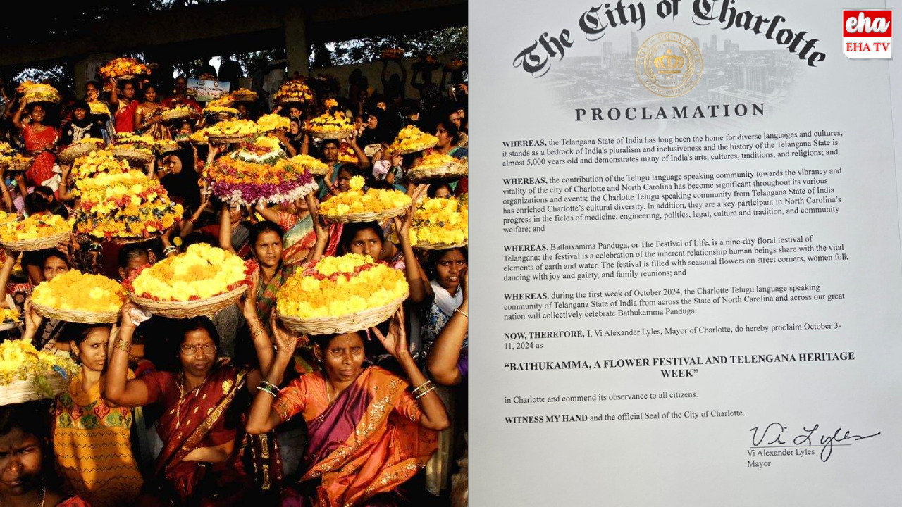 బతుకమ్మ(Bathukamma festival) సంబరాల వారాన్ని అధికారికంగా బతుకమ్మ పండగ వారం, తెలంగాణ హెరిటేజ్ వీక్గా ప్రకటించిన అమెరికాలోని నార్త్ కరోలినా, జార్జియా, చార్లెట్టే రాలేహ్, వర్జీనియా రాష్ట్రాలు.