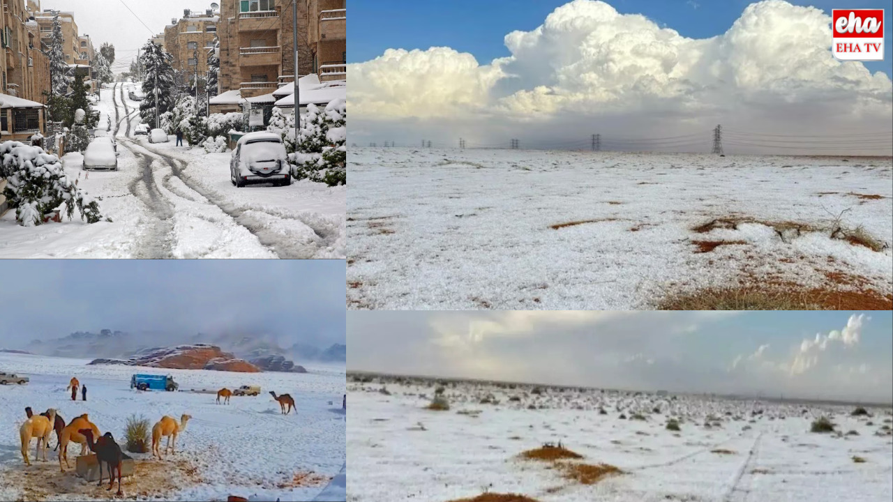 ఎడారి లోన పూలు పూచే అంటూ ఒక సినీ కవి రాశాడు. ఇప్పుడు పూలు కూడా పూస్తూన్నాయి. వర్షాలు కూడా పడుతున్నాయి. అంతకంటే చిత్రమేమిటంటే...మంచు కురియడం. సౌదీ అరేబియాలో మునుపెప్పుడు చూడని వింత ఇది. కొన్ని ప్రాంతాలలో భారీ వర్షాలు కురియడంతో పాటు మంచు కూడా కురుస్తోంది. ఇది చూసి జనం తెగ ఆశ్చర్యపోతున్నారు. ఎన్నడూ చూడని వాతావరణాన్ని చూస్తున్నామని మురిసిపోతున్నారు. అల్ - జౌఫ్ ప్రాంతంలో భారీగా మంచు కురిసింది. మొదటి సారి అక్కడ చలి కాలపు వాతావరణం కనిపించింది. ఈ ప్రాంతంలో భారీగా వర్షాలు కురవడం, వడగళ్ళు పడటం, మంచు కురియడం అన్నది ఇంతకు ముందు ఎప్పుడూ జరగలేదు. ఇదే మొదటిసారి. మంచును చూసిన ప్రజలు సంబరపడుతున్నారు. రానున్న రోజుల్లో తుఫాన్ వచ్చే అవకాశం ఉందని, భారీ వర్షాలు పడతాయని సౌదీ వాతావరణ శాఖ తెలిపింది.