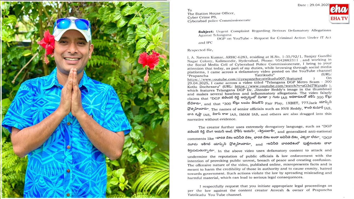 ప్రముఖ యూట్యూబర్, ప్రపంచ యాత్రికుడు అన్వేష్పై సైబర్ క్రైమ్ పోలీస్ స్టేషన్లో కేసు నమోదు చేసిన పోలీసులు.తెలంగాణ డీజీపీ జితేందర్(Jitender), మెట్రో ఎండీ ఎన్వీఎస్ రెడ్డి(NVS Reddy), ఐఏఎస్ అధికారులు శాంతికుమారి(Shanti kumari), దాన కిశోర్(Dhana kishore), వికాస్ రాజు (Vikas raju)తదితరులపై ఆరోపణలు చేసిన అన్వేష్.హైదరాబాద్ మెట్రోలో బెట్టింగ్ యాప్ల ప్రచారం పేరుతో రూ.300 కోట్లు కొట్టేశారంటూ ఓ వీడియో ద్వారా ప్రచారం చేశాడని సుమోటాగా కేసు నమోదు చేసిన పోలీసులు.