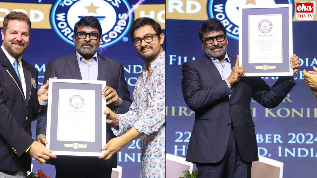 ఆయన ఇండస్ట్రీలోకి అడుగుపెట్టిన తర్వాతే తెలుగు సినిమా వేగం పుంజుకుంది. డ్యాన్స్లలో(Gance) కొత్తదనం వచ్చింది. ఫైట్స్లో(Fights) దూకుడు పెరిగింది. ఆయనే శివశంకర వరప్రసాద్. అభిమానులందరూ ముద్దుగా పిల్చుకునే చిరంజీవి(Chiranjeevi). నిజంగానే ఆయన వెండితెరకు ఓ వరం. అక్షయ ప్రసాదం. ఎన్నో అవార్డులు, మరెన్నో రివార్డులు ఆయనను వరించాయి. ఇప్పుడు గిన్నిస్ వరల్డ్ రికార్డు(Guinness World Record). 156 చిత్రాలు... 537 పాటలు... 24 వేల డ్యాన్స్ మూమెంట్స్... ఆ 24వేల డ్యాన్స్ మూమెంట్స్ అంటే మాటలు కాదుగా! ఇవే వరల్డ్ రికార్డును తెచ్చిపెట్టాయి. యాక్టర్, డ్యాన్సర్ విభాగంలో మోస్ట్ ప్రొలిఫిక్ ఫిల్మ్ స్టార్(Profolic film star) ఇన్ ది ఇండియన్ ఫిల్మ్ ఇండస్ట్రీ పేరిట గిన్నిస్ వరల్డ్ రికార్డ్స్ వారు చిరంజీవిని ఈ రికార్డ్కి ఎంపిక చేశారు. ఆదివారం జరిగిన కార్యక్రమంలో ముఖ్య అతిథిగా పాల్గొన్న బాలీవుడ్ స్టార్ ఆమిర్ ఖాన్ మెగాస్టార్ చిరంజీవికి ఈ రికార్డ్ని అందజేశారు. గిన్నిస్ వరల్డ్ రికార్డ్స్ ప్రతినిధి రిచర్డ్ స్టెన్నింగ్ ఈ కార్యక్రమంలో పాల్గొన్నారు. ఈ సందర్భంగా చిరంజీవి తనకు ఈ గౌరవాన్ని దక్కించిన ప్రతీ ఒక్కరికి ధన్యవాదాలు తెలుపుకున్నారు. నటనకు అవార్డులు వస్తాయని తెలుసు కానీ ఇలా డ్యాన్సులకు రావడం అనేది ఊహించలేదన్నారు. తనకు నటన మీదకన్నా డ్యాన్స్ మీద ఆసక్తి ఎక్కువని, బహుశా అదే తనకు ఈ అవార్డు తెచ్చిపెట్టి ఉంటుందని అనుకుంటున్నానని చిరంజీవి తెలిపారు. 'గిన్నిస్ వరల్డ్ రికార్డ్స్కి, మనకు సంబంధం ఏంటి? అని అనుకుంటాం కదా. అందుకని ఈ రికార్డు గురించి నాకు ఊహే లేదు. డ్యాన్స్ అనేది నాకు అదనపు అర్హత అయితే నా కొరియోగ్రాఫర్లు, నా ఈ విజయంలో నా దర్శక–నిర్మాతలు, అభిమానుల పాత్ర మరువలేనిది' అని మెగాస్టార్ అన్నారు. 'చిన్నప్పుడు వివిధభారతి, రేడియో సిలోన్లో వచ్చే పాటలకు డ్యాన్సులు చేసేవాడిని. రేడియోల్లో పాటలు రాగానే, శంకర్బాబు ని పిలవండి. డ్యాన్సులు వేస్తాడు అనేవారు. ఉత్సాహంగా స్టెప్పులు వేసేవాడిని. ఎన్సీసీలో చేరాక సాయంత్రాల్లో తిన్నాక అల్యూమినియమ్ ప్లేట్లను తిరగేసి వాయించి డ్యాన్సులు వేసేవాడిని' అని పాత విషయాలను గుర్తు చేసుకున్నారు. 'ఒకసారి రాజమండ్రిలో షూటింగ్ జరుగుతున్నప్పుడు సాయంత్రం సావిత్రి, రోజా రమణి, కవిత, నరసింహరాజు... ఇలా అందరూ ఓ పంచలో కూర్చున్నారు. సన్నగా వర్షం పడుతోంది. నన్ను డ్యాన్స్ చేయమని అడిగారు. వర్షానికి కాలు జారి కిందపడినా ఆపలేదు. దాన్ని నాగిని డ్యాన్సులాగా మార్చేసి స్టెప్పులేశాను. అక్కడున్న కో–డైరక్టర్ చూసి దర్శకుడు క్రాంతికుమార్గారికి చెప్పారు. ప్రాణం ఖరీదుకి నన్ను తీసుకున్నప్పుడు ఏలియల్లో ఏలియల్లో ఎందాక... అనే పాటను పెట్టారు. ఆ పాటకు స్టెప్ వేశాను. దానికన్నా ముందు పునాది రాళ్లులోనూ డ్