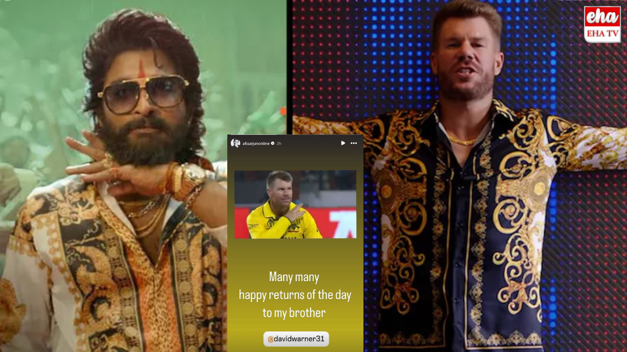 ఆస్ట్రేలియా క్రికెట్ ప్లేయర్ డేవిడ్ వార్నర్కు(David warner) తెలుగునాట చాలా మంది అభిమానులున్నారు. ఆయన ఐపీఎల్లో(IPL) హైదరాబాద్ టీమ్కు ప్రాతినిధ్యం వహించినప్పుడు మరింత దగ్గరయ్యారు. ఎంత గొప్ప ఆటగాడో అంత గొప్పగా రీల్స్ కూడా చేస్తారు. సినిమాల్లోని ఫేమస్ క్యారెక్టర్లకు తన ముఖాన్ని జోడించి రీల్స్ చేస్తూ చాలా పాపులరయ్యారు. టిక్ టాక్ లో మన తెలుగు పాటలకు వీడియోస్ చేస్తూ ట్రెండ్ అయ్యారు. ముఖ్యంగా 2021లో వచ్చిన పుష్ప(Pushpa) సినిమాలోని పుష్ప.. పుష్పరాజ్.. నీయవ్వ తగ్గేదేలే.. అనే వీడియో చేసిన డేవిడ్ వార్నర్ బోల్డంత మంది అభిమానులను సంపాదించుకున్నారు. ఆ తర్వాత వార్నర్, అల్లు అర్జున్(allu arjun) మధ్య బాండింగ్ ఏర్పడింది. బన్నీ పుట్టిన రోజున వార్నర్ విష్ చేసిన సంగతి తెలిసిందే. ఇవాళ డేవిడ్ వార్నర్ పుట్టిన రోజు. ఈ సందర్భంగా వార్నర్కు బర్త్ డే విషెస్ చెప్పారు అల్లు అర్జున్. "నా సోదరుడికి పుట్టిన రోజు శుభాకాంక్షలు" అని తన ఎక్స్ ద్వారా మెసేజ్ పంపారు.