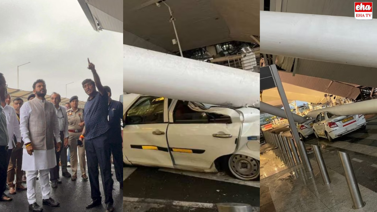 అర్థరాత్రి నుంచి దేశరాజధాని డిల్లీ(Delhi)లో ఎడతెరిపి లేకుండా వర్షం కురుస్తోంది. లోతట్టు ప్రాంతాలన్నీ జలమయమయ్యాయి. పొద్దుపొద్దున్నే పలు చోట్ల ట్రాఫిక్కు తీవ్ర అంతరాయం కలిగింది. పలు కాలనీల్లో కార్లు, బైకులు నీట మునిగాయి. జనజీవితం అస్తవ్యస్తంగా మారింది. మరోవైపు ఢిల్లీఎయిర్పోర్ట్ టెర్మినల్-1(Delhi Airport T1) వద్ద పైకప్పు కూలిన ఘటనలో ఒకరు మృతి చెందినట్లు అధికారులు ప్రకటించారు. మరో ముగ్గురికి తీవ్ర గాయాలు కాగా, టెర్మినల్-1 వద్ద కార్యకలాపాల్ని అధికారులు నిలిపివేశారు. ఈ రోజు తెల్లవారుజామున ఈదురు గాలుల వాన ధాటికి ఢిల్లీ ఎయిర్పోర్ట్ టెర్మినల్-1 వద్ద పైకప్పు కూలిపోయింది. ఘటనలో కొన్ని వాహనాలు ధ్వంసం అయ్యాయి. ఒకరు చనిపోయారు. ఆరుగురికి తీవ్ర గాయాలయ్యాయి. పలువురు అందులో చిక్కుకుపోయారు. సమాచారం అందుకున్న వెంటనే సహాయక చర్యలు మొదలయ్యాయి. ఫైర్ సిబ్బంది క్షతగాత్రుల్ని బయటకు తీసి ఆస్పత్రికి తరలించారు. ప్రస్తుతం అక్కడ సహాయక చర్యలు కొనసాగుతుండడంతో.. టెర్మినల్ వద్ద కార్యకలాపాలను పూర్తిగా నిలిపివేశారు. దీంతో ప్రయాణికులు ఇబ్బంది పడుతున్నారు. సహాయక చర్యలను వ్యక్తిగతంగా పర్యవేక్షిస్తున్నట్లు కేంద్ర పౌరవిమానయాన శాఖ మంత్రి రామ్మోహన్నాయుడు(Minister Rommohan Naidu) ఎక్స్ (ట్విట్టర్) ద్వారా తెలిపారు.కూలిన ఢిల్లీ ఎయిర్పోర్ట్ టెర్మినల్-1 పై కప్పు.. ఒకరి మృతి, ఆరుగురికి గాయాలు