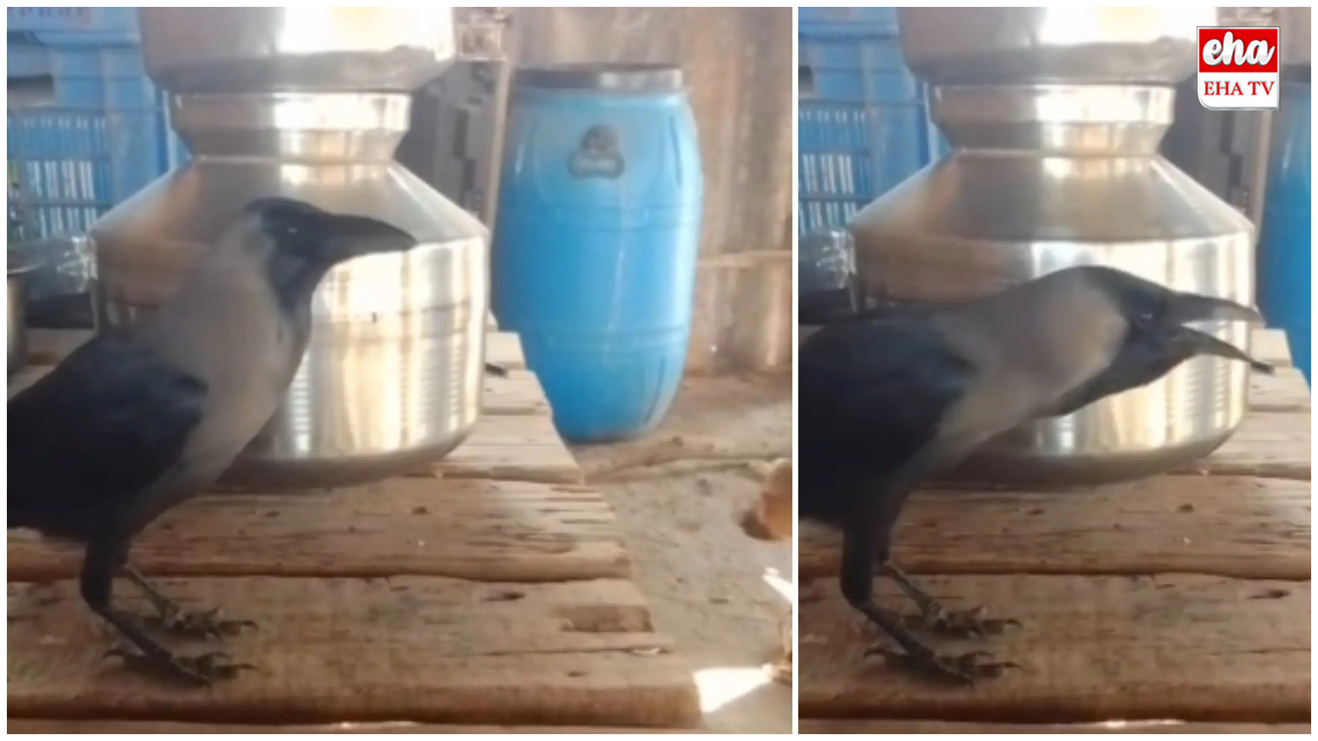 మహారాష్ట్రలోని పాల్ఘర్లో ఒక కాకి చిన్న పిల్లాడిలా సంభాషిస్తుంది.