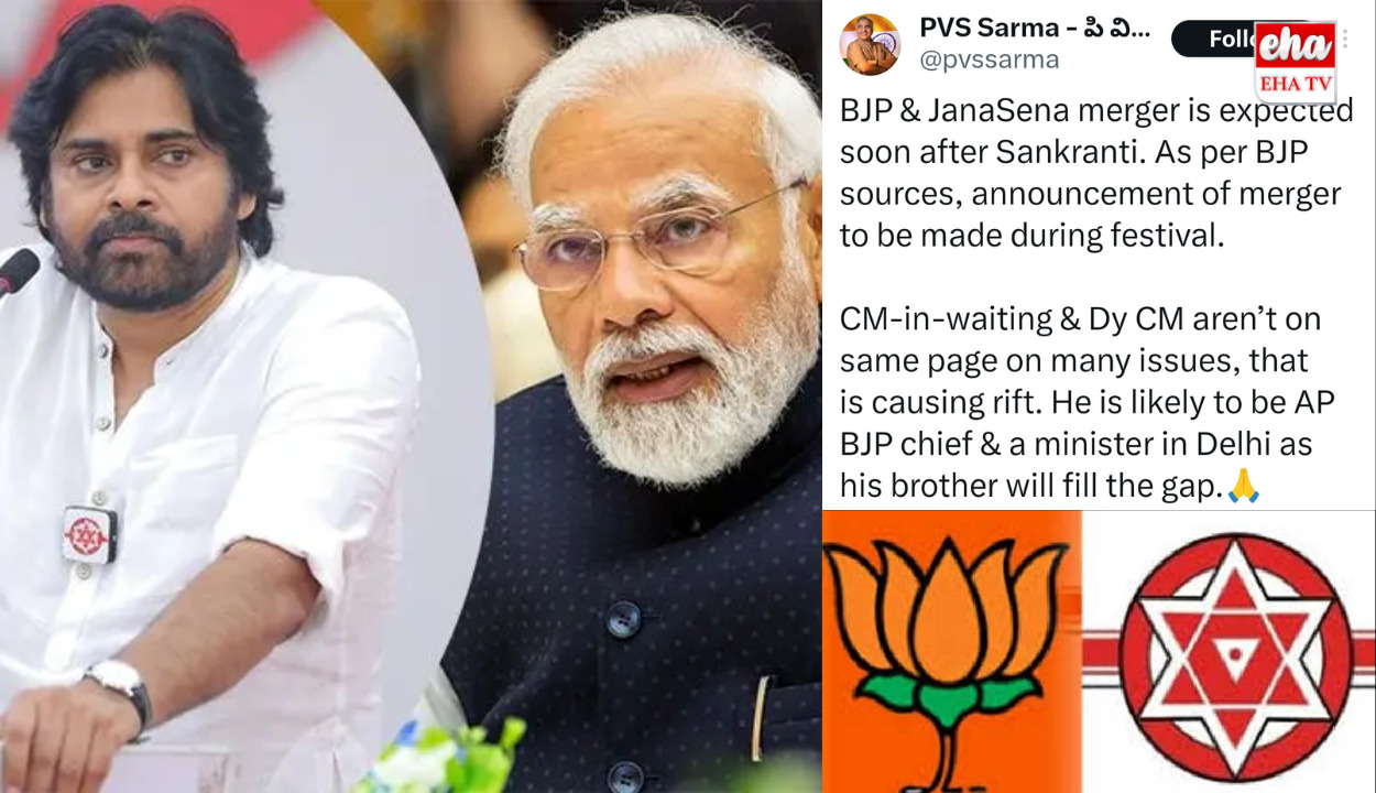 త్వరలో బీజేపీలో జనసేన విలీనం కానుందని మాజీ అధికారి పీవీఎస్ శర్మ ఎక్స్వేదికగా ప్రకటించారు. సంక్రాంతి తర్వాత బీజేపీ-జనసేన విలీనమయ్యే అవకాశం ఉందని.. పండుగ సమయంలోనే విలీనంపై ప్రకటన వెలువడుతుందని బీజేపీ వర్గాలు తెలిపాయన్నారు. ఆంధ్రప్రదేశ్ ముఖ్యమంత్రి చంద్రబాబు(Chandra Babu), డిప్యూటీ ముఖ్యమంత్రి పవన్ కల్యాణ్(Pawan Kalyan) సఖ్యతగా లేరని అన్నారు. అందుకే ఈ చీలికకు కారణమవుతుందన్నారు. రాష్ట్రంలో పవన్ లోటును ఆయన సోదరుడు భర్తీ చేస్తారన్నారు. పవన్ ఏపీ బీజేపీ చీఫ్గా, కేంద్రమంత్రి అయ్యే అవకాశం ఉందన్నారు. కాగా పవన్ కేంద్ర మంత్రి కానున్నారని ఇప్పటికే వార్తలు వస్తున్నాయి. పవన్ కల్యాణ్ వ్యూహంలో భాగంగానే నాగబాబు(nagababu)కు ఈ పదవి కట్టబెట్టనున్నారని తెలుస్తోంది. నాగబాబును రాష్ట్ర కేబినెట్లోకి తీసుకొని తాను కేంద్రమంత్రిగా వెళ్లాలనుకున్నట్లు తెలుస్తోంది. పవన్ కల్యాణ్ ఈ మధ్య కాలంలో జాతీయ అంశాలపై పదేపదే మాట్లాడుతున్నారు. బంగ్లాదేశ్లో హిందువుల పరిస్థితిపై తన వాదనను వినిపిస్తున్నారు. సనాతన ధర్మం గురించి మాట్లాడడంతో ఆయనకు దేశవ్యాప్తంగా పాపులర్ అయ్యారు. ఈ క్రమంలో ఆయన రాష్ట్రంలో ఉండే కంటే ఢిల్లీలో ఉంటేనే బాగుంటుందని సమాచారం. ఎన్నికల సమయంలో టిక్కెట్లు, సీట్ల సర్దుబాటు సమయంలో తనను బీజేపీ పెద్దలు ఎంపీగా పోటీ చేయాలని సూచించారని పవన్ కల్యాణ్ బహిరంగంగానే ప్రకటించారు. కానీ ఆయన ఎమ్మెల్యేగానే పోటీ చేశారు. డిప్యూటీ ముఖ్యమంత్రి అయ్యారు. ఇప్పుడు పవన్ కల్యాణ్కు వచ్చిన జాతీయస్థాయి ఇమేజ్తో తమిళనాడు, ఢిల్లీతో పాటు ఇతర రాష్ట్రాల్లో ఎన్నికల ప్రచారానికి ఉపయోగించుకోవచ్చన్న ఎన్డీఏ బాగస్వామి పెద్దల వ్యూహంగా కనిపిస్తోంది.