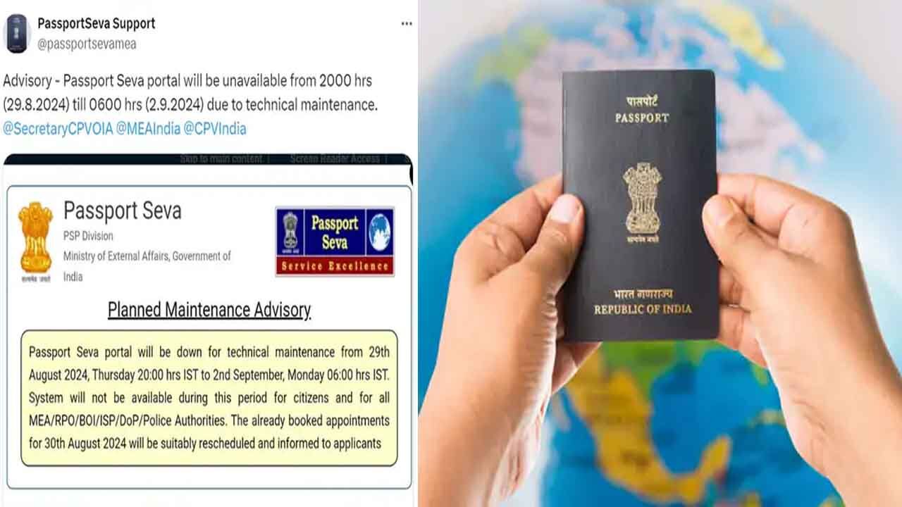 దేశవ్యాప్తంగా పాస్పోర్టు సేవలు 5 రోజుల పాటు బంద్లో ఉంటాయి. ఈ మేరకు పాస్పోర్ట్ డిపార్ట్మెంట్ అడ్వైజరీ జారీ చేసింది. సాంకేతిక నిర్వహణ కారణంగా పాస్పోర్ట్ సేవా పోర్టల్ ఆగస్టు 29 రాత్రి 8 గంటల నుండి సెప్టెంబర్ 2 ఉదయం వరకు మూసివేయబడుతుందని డిపార్ట్మెంట్ తెలిపింది.