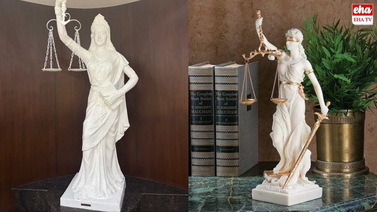 బ్రిటీష్(British) కాలం నాటి నుంచి వస్తున్న ఆనవాయితీకి తెరదించారు. బ్రిటీష్ కాలం నుంచి న్యాయదేవత(lady justice) కళ్లకు గంతలు కట్టి సమన్యాయం అంటూ చెప్పుకొచ్చారు. కానీ తొలిసారి న్యాయదేవత కళ్లకు గంతలు తీయడంపై ఆసక్తిరేగుతోంది. అంతేకాదు ఖడ్గదారి అయిన న్యాయదేవత ఎడమచేతిలో రాజ్యాంగం(constitution) పెట్టారు. ఇదంతా సుప్రీంకోర్టు న్యాయమూర్తుల లైబ్రరీలో సరికొత్త న్యాయదేవత విగ్రహాన్ని ఆవిష్కరించారు. సుప్రీంకోర్టు ప్రధాన న్యాయమూర్తి జస్టిస్ చండ్రుచూడ్ ఆదేశాల ప్రకారం న్యాయదేవత కొత్త విగ్రహాన్ని అమర్చారు. చట్టానికి కళ్లు లేవన్న పాత సిద్ధాంతాన్ని పక్కన పెట్టేశారు. న్యాయదేవత కళ్లకు గంతలు తీసేశారు. కళ్లారా చూస్తూ.. సమన్యాయం అందించే న్యాయదేవత ఇప్పుడు తెర మీదకు వచ్చినట్లైంది. అచ్చమైన భారతీయ వనితలా స్వచ్ఛతను స్ఫూర్తికి తెచ్చేలా న్యాయదేవతకు తుదిరూపు ఇచ్చారు. రాజుల కాలం నాటి ఖడ్గంతో తీర్పు ఇస్తున్నట్లు కాకుండా రాజ్యాంగం ప్రకారం తీర్పు ఇస్తున్నట్లు ఉండాలన సీజేఐ సూచనలతో మార్పులు చేపట్టారు. అయితే మరో చేతిలో ఉండే త్రాసును మాత్రం అలాగే ఉంచారు. చట్టం ముందు అందరూ సమానమేనన్న విషయాన్ని తెలిపే త్రాసును అలాగే ఉంచారు.