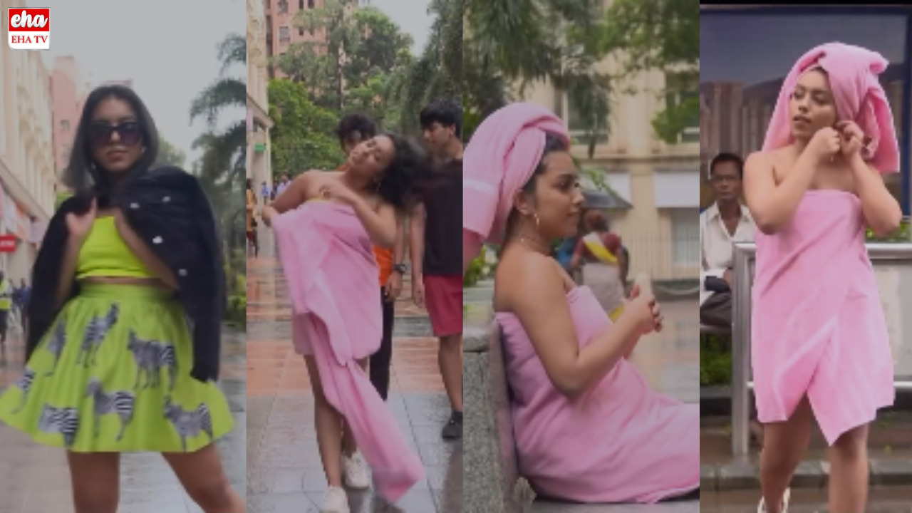 సోషల్ మీడియాలో(social Media) పాపులరవ్వడానికి ఏదేదో చేస్తున్నారు. వ్యూస్ కోసం తెగ తాపత్రయపడుతున్నారు. దిక్కుమాలిన రీల్స్(Reels) చేస్తున్నారు. ప్రస్తుతం ఇన్స్టాగ్రామ్లో(Instagram) తౌబా-తౌబా ట్రెండ్(Tauba trend) నడుస్తోంది. ఈ ట్రెండ్లో వ్యూస్ కోసం స్పెషల్గా డాన్స్లు గట్రాలు చేస్తూ పోస్ట్ చేస్తున్నారు. ఓ అమ్మాయి ఇలాగే రోడ్డుమీద రీలు చేస్తుంటే వచ్చిపోయేవారు వింతగా చూశారు. ఇందుకు సంబంధించిన వీడియో ఒకటి సోషల్ మీడియాలో బాగా వైరల్ అవుతోంది. ఆ అమ్మాయి పేరు తనుమితా(thanumitha) ఘోషా. మైంత్రా ఫ్యాషన్ సూపర్స్టార్. వీటితో పాటు సోషల్ మీడియాలో ఇన్ఫ్లూయెన్సర్ కూడా! తౌబా-తౌబాట్రెండ్పై రీల్ చేయడం కోసం ముంబాయి వీధుల్లో తిరిగింది. అదికూడా టవల్తో(Towel)! శరీరంలో సగానికి పింక్ కలర్ టవల్ చుట్టుకుని, తలపై తడి జుట్టును మరో టవల్తో కవర్ చేస్తూ రోడ్డు మీదకు వచ్చింది. ఆమెను చూస్తే బాత్రూమ్ నుంచి డైరెక్ట్గా రోడ్డు మీదకు వచ్చినట్టు కనిపించింది. రోడ్డు మీద వెళుతున్నవారికి ఆమె తనుమిత ఘోష్ అని తెలియదు. అందుకే వింతగా చూశారు. అలా నడుస్తూ నడుస్తూ కాసేపటికి శరీరంపై వేసుకున్న టవల్ను తీసేసింది. లోపల్ డ్రస్ వేసుకుని ఉంది. ఇప్పుడీ వీడియో చక్కర్లు కొడుతోంది. ఇప్పటికే ఈ వీడియోను పదిలక్షల మందికిపైగా చూశారు.