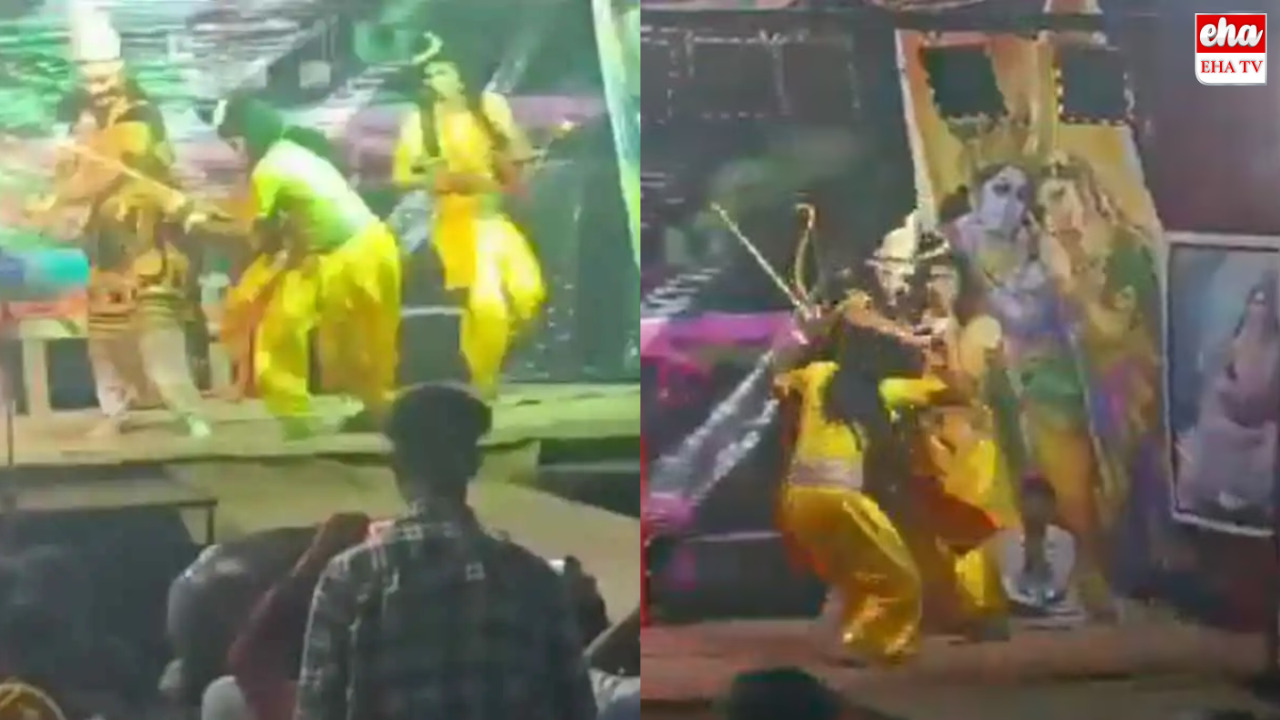 శరన్నవరాత్రుల సమయంలో ఉత్తరాదిన రామ్లీలా(Ram leela) నాటకాన్ని ప్రదర్శించడం కొన్నేళ్లుగా వస్తున్న సంప్రదాయం. ఈ నాటకం కోసం కొన్ని నెలల ముందు నుంచే రిహార్సల్స్ మొదలవుతుంటాయి. ఉత్తరప్రదేశ్లోని(Uttar Pradesh) అమ్రోహా జిల్లాలో(Amreha) దసరా(Dasara) రోజున రామ్లీలా నాటకాన్ని ప్రదర్శించారు. నాటకంలో రాముడు, రావణ పాత్రధారులు బాణాలతో యుద్ధం చేస్తున్నట్టు బాగా నటించారు. తర్వాత ఏమైందో కానీ ఇద్దరూ విల్లంబులు పక్కన పెట్టేసి ఒకరినొకరు తెగ కొట్టుకున్నారు. గజ్రౌలా పోలీస్ స్టేషన్ పరిధిలోని సేలంపూర్ గొన్సాయి గ్రామంలో ఈ నాటక ప్రదర్శన జరిగింది. నాటకం క్లమాక్స్లో రామ లక్ష్మణులు రావణుడితో యుద్ధం చేయసాగారు. ఒకరిపై ఒకరు బాణాలు విసురుకున్నారు. ఇంతలో రాముడి వేషధారుడిని రావణ పాత్రధారుడు స్టేజ్పై నుంచి కిందకు తోశాడు. దాంతో ఇద్దరి మధ్య గొడవ మొదలయ్యింది. ఒకరినొకరు కొట్టుకున్నారు. ప్రేక్షకులలో కొందరు వెంటనే జోక్యం చేసుకుని ఇద్దరిని విడిపించారు. దీంతో అక్కడ గందరగోళం నెలకొంది. నాటక ప్రదర్శనను నిలిపివేశారు. ఇందుకు సంబంధించిన దృశ్యాలు సోషల్ మీడియాలో వైరల్ అవుతున్నాయి. మరోచోట జరిగిన రామ్లీలా ప్రదర్శనలో రాముడు, హనుమంతుడు వేషం వేసిన వ్యక్తులు వేదికపై కొట్టుకున్నారు. రామాయణంలో లక్ష్మణుడు మూర్ఛపోయే సన్నివేశం ఉంటుంది కదా! నాటకంలో కూడా లక్ష్మణుడు మూర్ఛపోతాడు. తమ్ముడిని దగ్గరకు వచ్చిన రాముడి పాత్రధారుడిని హనుమంతుడి వేషధారుడు కాలితో తన్నాడు. అక్కడ గొడవ మొదలయ్యింది. అది పెరిగి చితక్కొట్టుకునే వరకు వెళ్లింది. ఇందుకు సంబంధించిన దృశ్యాలు కూడా సోషల్ మీడియాలో చక్కర్లు కొడుతున్నాయి.