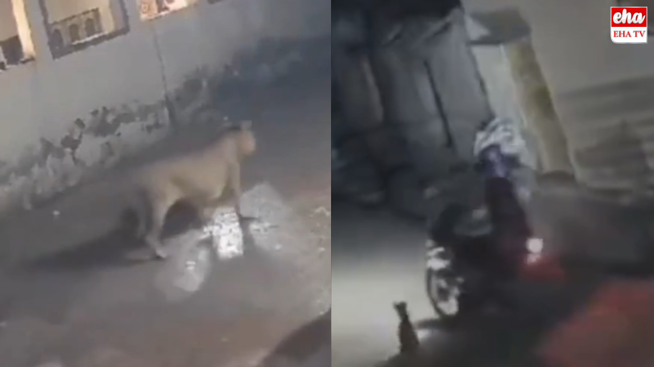 గుజరాత్(Gujarath) రాష్ట్రం లోని ఉనా జిల్లా నవబందర్ గ్రామంలో ఒక మహిళ, మరో వ్యక్తి కలిసి బైక్పై వెళుతుండగా ఓ సింహం వారికి ఎదురుగా వచ్చింది.. ఒక్కసారిగా సింహాన్ని చూసి భయపడిన వారిద్దరూ బైక్ను అక్కడే వదిలేసి ప్రాణ భయంతో పరుగులు తీశారు. కానీ, సింహం మాత్రం కూల్ గా నడుచుకుంటూ వెళుతుంది. ఇందుకు సంబంధించిన వీడియో అక్కడి సీసీ టీవీలో రికార్డు అయ్యింది. ఆ వీడియో ఇప్పుడు సోషల్ మీడియాలో వైరల్ అవుతోంది..