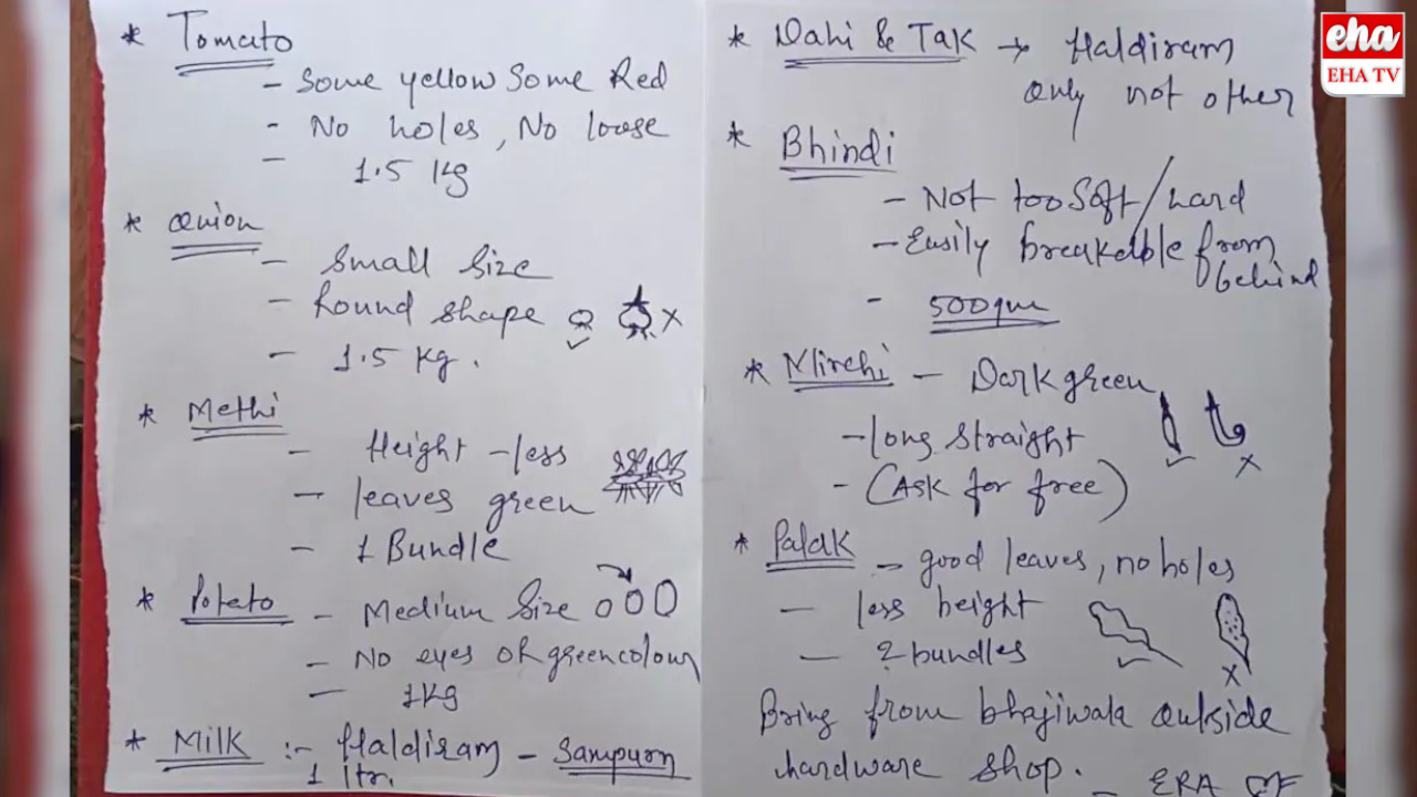 ఆయన ఓ రిటైర్డ్ ఐఎఫ్ఎస్(IAS) అధికారి. పెళ్లయిన నాటి నుంచి ఇంత వరకు కూరగాయలు(vegetables) కొన్నారో లేదో తెలియదు. అయితే తన భార్య చేసిన పనిని బట్టి ఆయన కూరగాయలు కొనలేదనే అనిపిస్తుంది. మార్కెట్కు వెళ్తున్న తన భర్తకు కూరగాయలు ఎలా కొనాలో అంటూ ఓ గైడ్లైన్స్ రాసిచ్చింది(Gudilines). ప్రతి ఒక్క కూరగాయకు నిర్దిష్ట పరిమాణం, అవి ఎలా ఉండాలో తెలియజేస్తూ పేపర్పై రాసి భర్తకు అందించింది. ఈ ఫొటోను తన భర్తే ఎక్స్లో పంచుకున్నారు. ఇది ఇప్పుడు వైరల్గా మారింది.