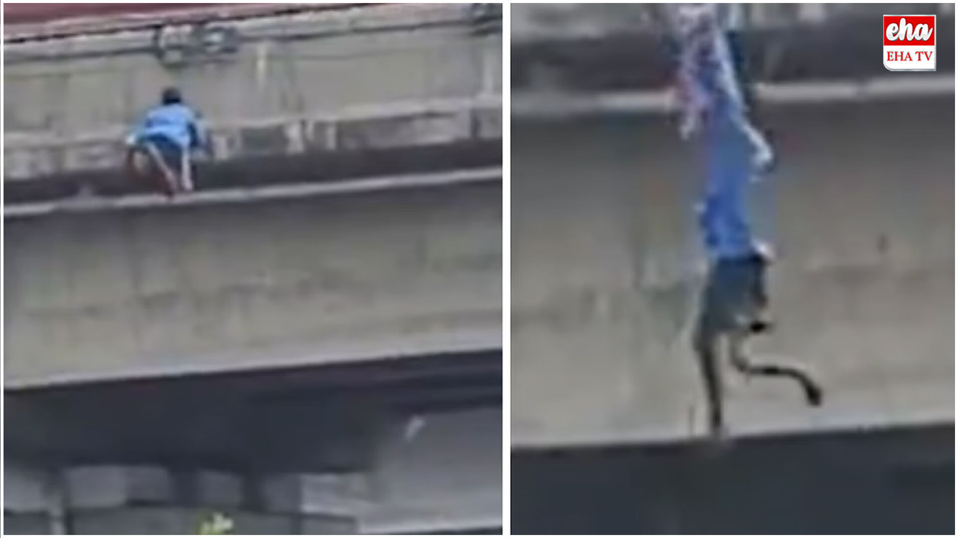 చెన్నైలోని 60 అడుగుల ఎత్తైన ఫ్లైఓవర్‌పై కేబుల్ వైర్ ఉపయోగించి ప్రమాదకరమైన స్టంట్ చేయడానికి ప్రయత్నించిన యువకుడు గాయపడ్డాడు.