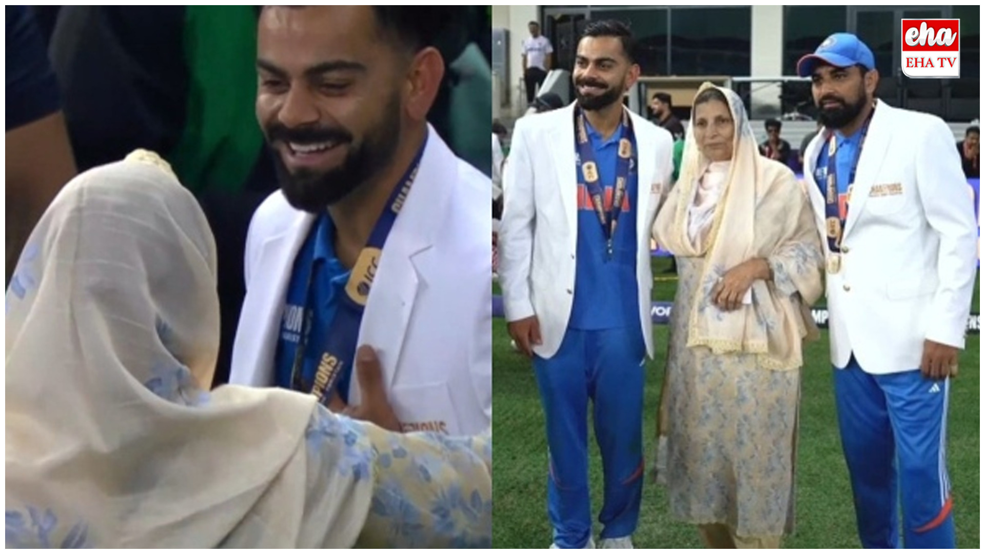 భారత పాస్ట్ బౌలర్ మహ్మద్షమీ తల్లి వద్ద విరాట్ కోహ్లీ ఆశీర్వాదాలను తీసుకున్నాడు. ఐసీసీ ఛాంపియన్స్ ట్రోపీ ఫైనల్ మ్యాచ్లో న్యూజిలాండ్పై భారత్ జట్టు గెలిచింది. అనంతరం విరాట్ నేరుగా షమీ తల్లి వద్దకు వెళ్లి ఆశీర్వాదం తీసుకున్నాడు. ఈ వీడియో సోషల్ మీడియాలో వైరల్ అవుతుంది.