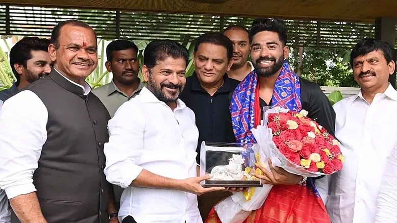 భారత పేసర్ మహమ్మద్ సిరాజ్ ఈరోజు తెలంగాణ ముఖ్యమంత్రి రేవంత్ రెడ్డిని కలిసి ఆయనకు టీమ్ ఇండియా జెర్సీని బహూకరించారు.