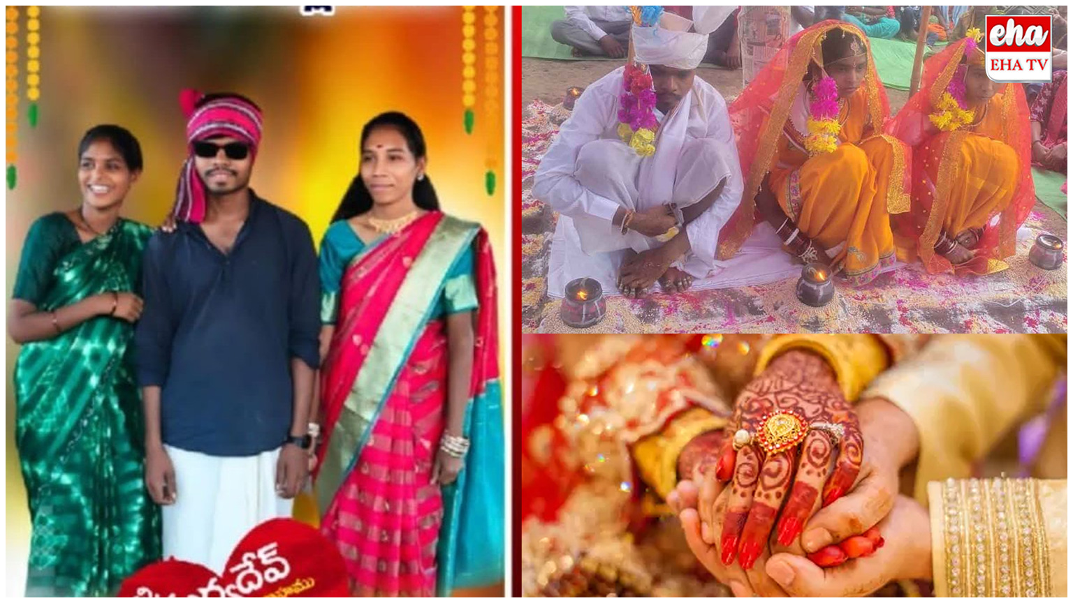కొమరం భీమ్ ఆసిఫాబాద్ జిల్లా లింగాపూర్ మండలం గుమ్నూర్ గ్రామంలో జరిగిన పెళ్లి ప్రస్తుతం నెట్టింట వైరల్గా మారింది. సూర్యదే వ్ (Suryadev)అనే యువకుడు.. లాల్ దేవీ(Lal devi), జల్కర్ దేవీ(jalkar devi)లను ప్రేమించాడు. ఆ ఇద్దరు అమ్మాయిలు కూడా సూర్యదేవ్ ను మనసారా ప్రేమించారు. ముగ్గురు కలిసి ఉండేందుకు తమకు అభ్యంతరం లేదని కూడా వాళ్లు ముందే మాట్లాడు కున్నారు.ఈ క్రమంలో మొదట పెద్ద వాళ్లు అంగీకరించకున్నా.. ఆ తర్వాత వీళ్ల ప్రేమను చూసి, అర్థం చేసుకుంటామన్న మాటల్ని విని పెద్దలు వీళ్ల పెళ్లిళ్లకు అంగీకరించారు. ఈ క్రమంలో యువకుడు.. ఇద్దరమ్మాయిలతో ఒకేసారి పెళ్లిని చేసుకున్నాడు. లాల్దేవీ, జల్కర్ దేవీలతో పెళ్లి పత్రిక కూడా కొట్టించాడు. అంతే కాకుండా అందరి ముందు.. పెళ్లిమండపంలో.. ఇద్దరమ్మాయిలతో పెళ్లివేడుక గ్రాండ్గా జరిగింది. వీళ్ల పెళ్లికి గ్రామస్థులంతా తరలివచ్చారు. అందరి ముందు సప్తపది ఏడడుగులు వేసి.. మూడు మూళ్లు ఇద్దరి మెడలో వేర్వేరుగా కట్టాడు.ఈ వీడియో ప్రస్తుతం నెట్టింట వైరల్గా మారింది. దీన్ని చూసిన నెటిజన్లు నువ్వు గ్రేట్ భయ్యా.. అంటూ కామెంట్లు పెడుతున్నారు. ఒక పెళ్లికే నానా తంటాలు పడుతున్న ఈ రోజుల్లో నువ్వు ఒకేసారి రెండు పెళ్లిళ్లుచేసుకున్నావ్ అంటూ ఫన్నీగా కామెంట్లు చేస్తున్నారు.