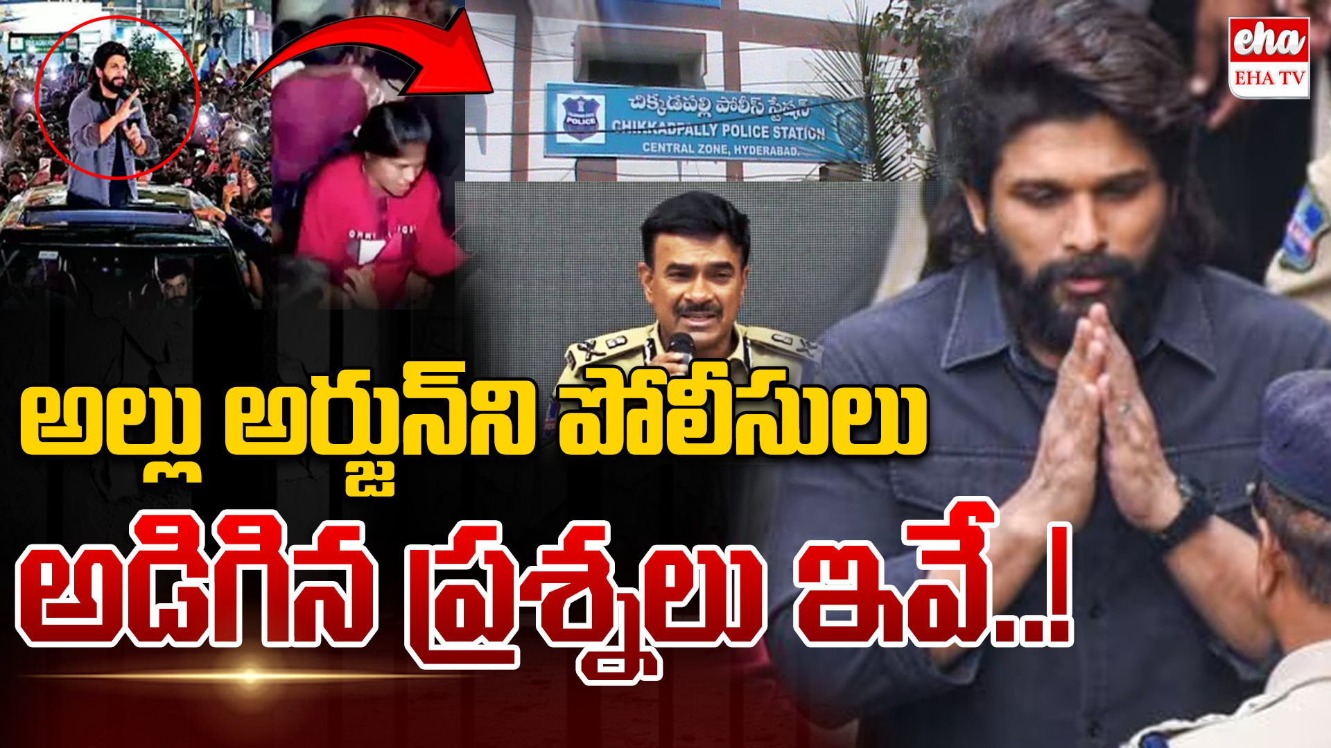 అల్లు అర్జున్ వివాదం రోజుకోమలుపు తిరుగుతుంది. ఆయనపై కేసు ఇప్పట్లో కొలిక్కి వచ్చేలా కనిపించడంలేదు. ఈక్రమంలో సంధ్య థియేటర్ ఘటనపై పోలీసుల విచారణ కొనసాగుతోంది. ఇంతకీ విచారణలో ఆయన్ను అడిగిన ప్రశ్నలు ఏంటి..?