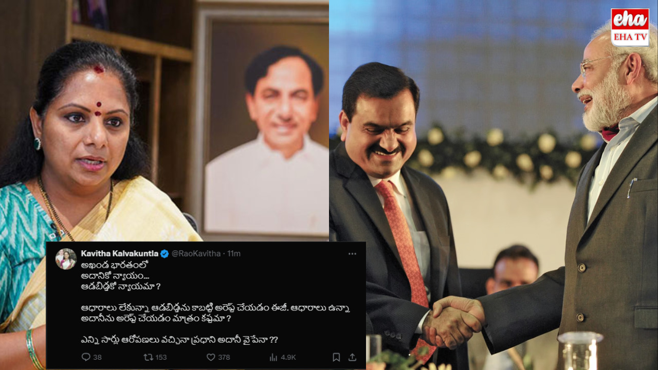 అదానీ(Adani) వ్యవహారంపై బీఆర్ఎస్(BRS) నేత, ఎంఎల్సీ కవిత(MLC Kavitha) సంచలన ట్వీట్(Tweet) చేశారు.