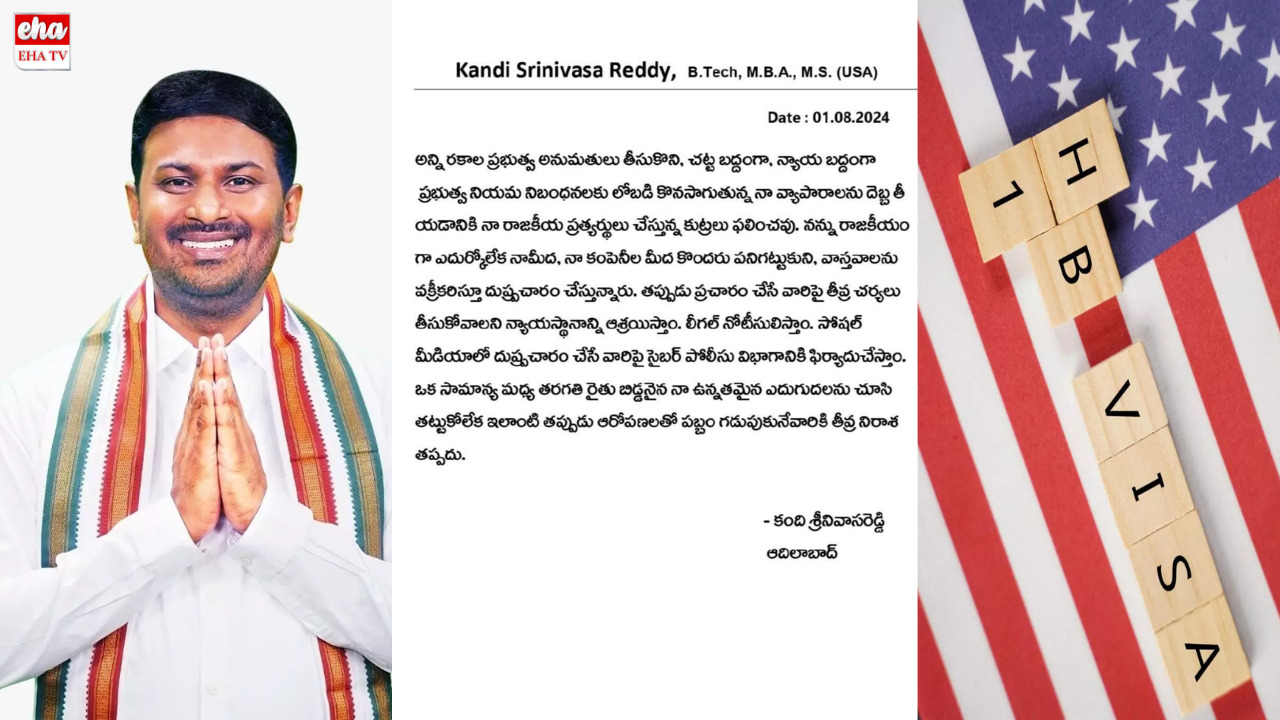 అగ్రరాజ్యం అమెరికాలో(america) భారీ వీసా స్కామ్(Visa scam) వెలుగులోకి వచ్చింది. H-1B వీసా రిగ్గింగ్(H1B Visa Rigging) జరిగిందని చెబుతున్నారు. ఇందులో ఆదిలాబాద్(Adilabad) అసెంబ్లీ నియోజకవర్గం కాంగ్రెస్(congress) అభ్యర్థి ప్రమేయం ఉందన్న వార్త సోషల్ మీడియాలో(Social media) వైరల్ అవుతోంది. అయితే ఇందులో నిజం లేదని కంది శ్రీనివాస్రెడ్డి(Kandhi srinivas reddy) క్లారిటీ ఇచ్చుకున్నారు. ఈ మేరకు ఆయన ఓ వివరణ ఇచ్చుకున్నారు. 'అన్ని రకాల ప్రభుత్వ అనుమతులు తీసుకుని, చట్టబద్ధంగా, న్యాయబద్ధంగా ప్రభుత్వ నియమ నిబంధనలకు లోబడి కొనసాగుతున్న నా వ్యాపారాలను దెబ్బ తీయడానికి నా రాజకీయ ప్రత్యర్థులు చేస్తున్న కుట్రలు ఫలించవు. నన్ను రాజకీయంగా ఎదుర్కొలేక నా మీద, నా కంపెనీల మీద కొందరు పనిగట్టుకుని, వాస్తవాలను వక్రీకరిస్తూ దుష్ర్పచారం చేస్తున్నారు. తప్పుడ ప్రచారం చేసే వారిపై తీవ్ర చర్యలు తీసుకోవాలని న్యాయస్థానాన్ని ఆశ్రయిస్తాం. లీగల్ నోటీసులు ఇస్తాం. సోషల్ మీడియాలో దుష్ర్పచారం చేసేవారిపై సైబర్ పోలీసు విభాగానికి ఫిర్యాదు చేస్తాం. ఒక సామాన్య మధ్య తరగతి రైతు బిడ్డనైన నా ఉన్నతమైన ఎదుగుదలను చూసి తట్టుకోలేక ఇలాంటి తప్పుడు ఆరోపణలతో పబ్బం గడుపుకునేవారికి తీవ్ర నిరాశ తప్పదు' అని ప్రకటించారు.