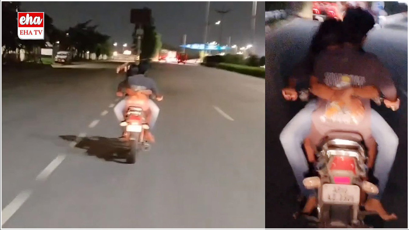 హైదరాబాద్ నగరంలోని ఆరంగర్ ఫ్లైఓవర్పై ఓ ప్రేమ జంట విచ్చలవిడిగా ప్రవర్తించిన ఘటన సామాజిక మాధ్యమాల్లో వైరల్గా మారింది. ఈ జంట రన్నింగ్ బైక్పై రొమాన్స్ చేస్తూ, అసభ్యకర రీతిలో ప్రయాణిస్తూ వీడియో తీసుకున్నట్లు సమాచారం. ఈ ఘటనను గమనించిన ఇతర వాహనదారులు ఆగ్రహం వ్యక్తం చేస్తూ, పోలీసులు చర్యలు తీసుకోవాలని డిమాండ్ చేస్తున్నారు.ఓ యువకుడు బైక్ నడుపుతుండగా, అతని ప్రియురాలు ముందు పెట్రోల్ ట్యాంక్పై ఎదురుగా కూర్చొని హగ్ చేసుకుని ప్రయాణించింది. ఈ దృశ్యాలను రహదారిపై ప్రయాణిస్తున్న మరో వాహనదారుడు తన సెల్ఫోన్లో రికార్డ్ చేసి, సామాజిక మాధ్యమాల్లో పోస్ట్ చేయడంతో ఈ వీడియో వైరల్గా మారింది. ఈ జంట రిల్స్ తీసుకునేందుకు ఈ విధంగా వ్యవహరించినట్లు తెలుస్తోంది.