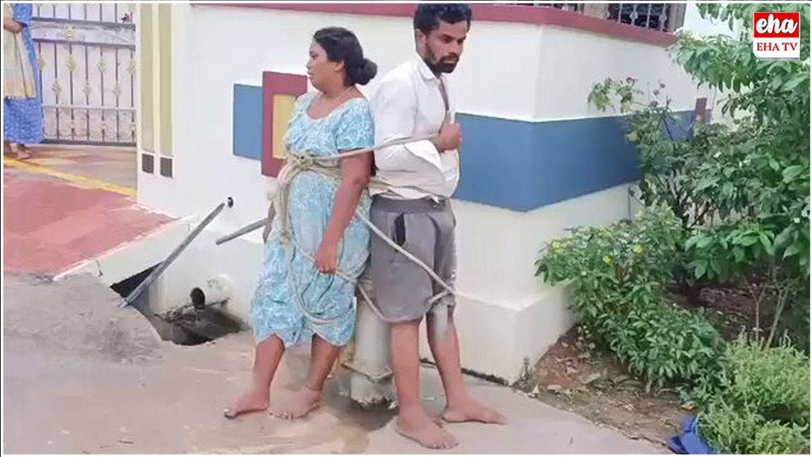 సుల్తానాబాద్(Sultanabad)లోని అశోక్ నగర్కు చెందిన మౌనిక(Mounika) అనే వివాహిత ఫేస్బుక్ ద్వారా జయశంకర్ భూపాలపల్లి జిల్లాకు చెందిన స్వామి (Swamy)అనే యువకుడితో పరిచయం ఏర్పరచుకుంది. ఈ పరిచయం క్రమంగా వివాహేతర సంబంధంగా మారింది. గత మూడు రోజులుగా స్వామి మౌనిక ఇంట్లో ఉండడం స్థానికుల దృష్టికి రావడంతో, వారు ఆగ్రహానికి గురై ఇద్దరినీ తాడుతో కట్టి, యువకుడిని శారీరకంగా శిక్షించారు. ఆ తర్వాత, ఇద్దరినీ సుల్తానాబాద్ పోలీస్ స్టేషన్కు అప్పగించారు.