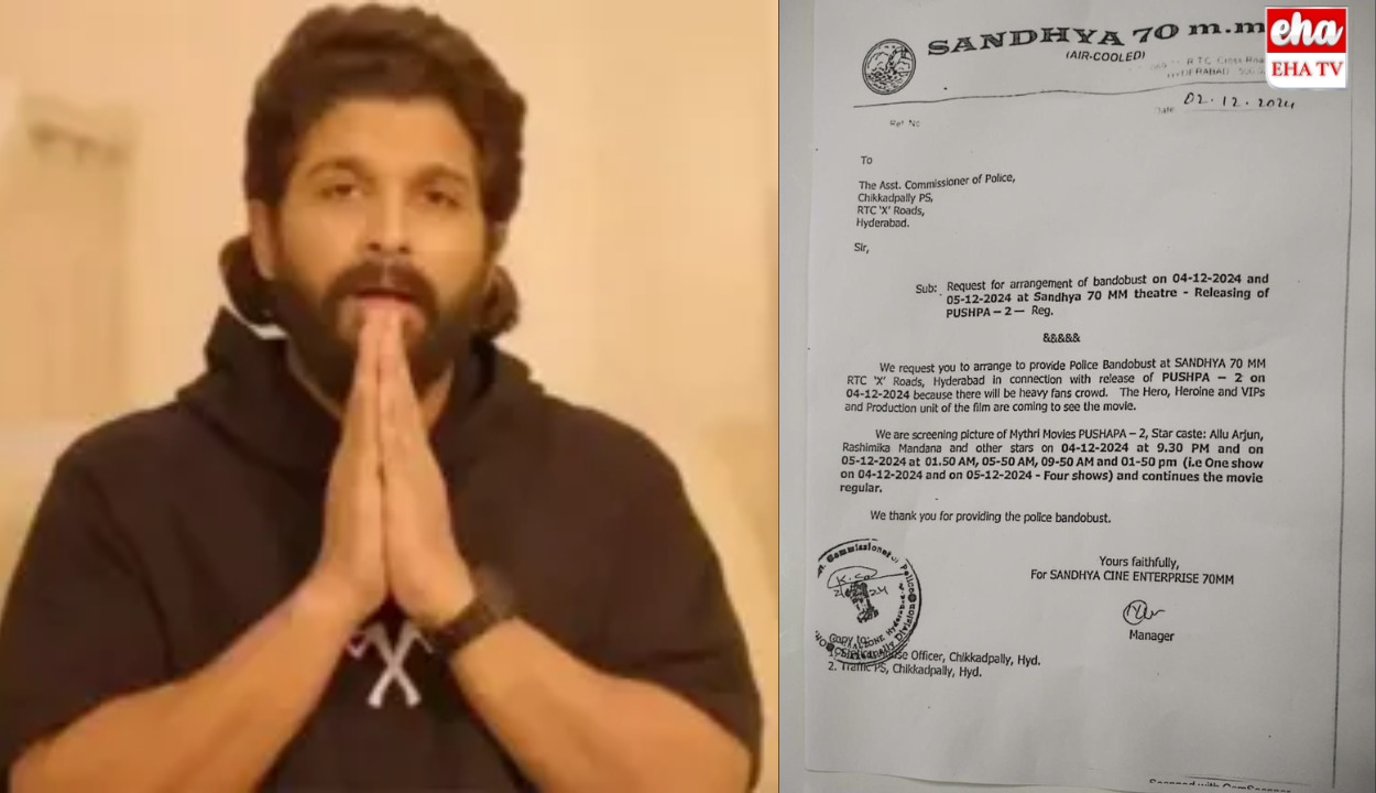 ఈ తొక్కిసలాటలో రేవతి అనే మహిళ మృతి చెందింది. దీంతో హీరో అల్లు అర్జున్ను చిక్కడపల్లి పోలీసులు అరెస్ట్ చేశారు. పుష్ప 2 సినిమా బెనిఫిట్ షో సందర్భంగా హైదరాబాద్ సంధ్య థియేటర్లో విషాదం చోటు చేసుకున్న విషయం తెలిసిందే. అయితే సంధ్య థియేటర్ యాజమాన్యం ఈనెల 2వ తేదీన హైదరాబాద్ సీపీకి ఓ లేఖ రాసింది. అల్లు అర్జున్, రష్మిక, ఇతర వీఐపీలు వస్తున్నారని తగిన బందోబస్తు కల్పించాలని ఆ లేఖలో ఉంది.