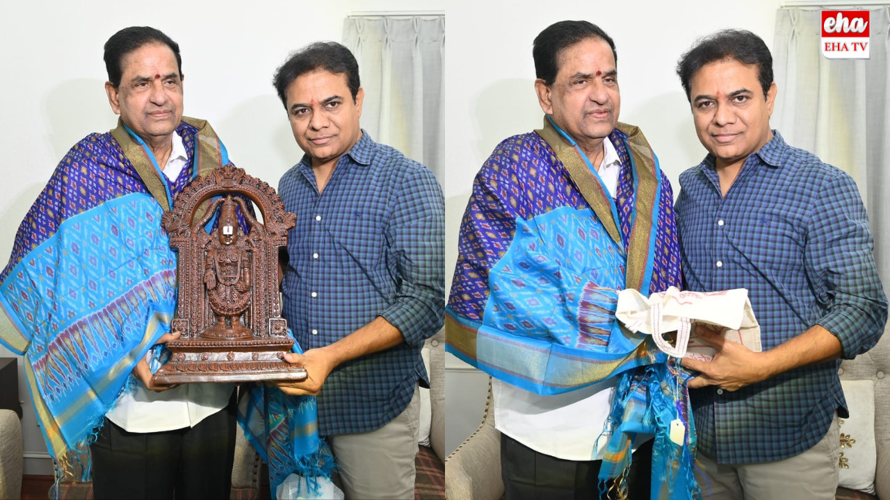 ఈరోజు నందినగర్ నివాసంలో బీఆర్ఎస్ పార్టీ వర్కింగ్ ప్రెసిడెంట్ కేటీఆర్ను టీటీడీ ఛైర్మన్ బి.ఆర్. నాయుడు మర్యాదపూర్వకంగా కలిశారు. కేటీఆర్ శ్రీ వెంకటేశ్వర స్వామివారి తీర్థప్రసాదాలు టీటీడీ ఛైర్మన్ అందించారు. ఈ సందర్భంగా టీటీడీ ఛైర్మన్ బి.ఆర్.నాయుడుకి శాలువా కప్పి శ్రీ వెంకటేశ్వర స్వామి జ్ఞాపికను అందజేశారు.