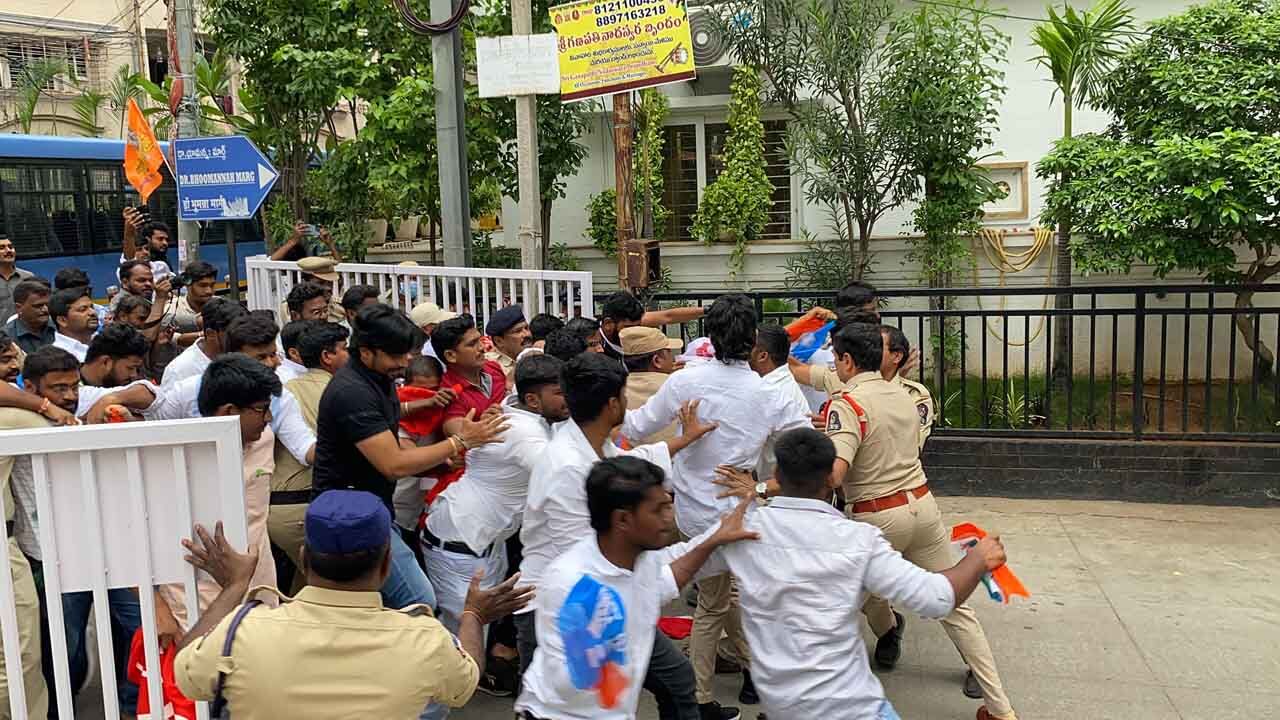 కేంద్ర మంత్రి కిషన్ రెడ్డి ఇంటిని యువజన విద్యార్థి సంఘాల నాయకులు ముట్టడించారు. ఎమ్మెల్సీ బల్మూర్ వెంకట్ నేతృత్వంలోని ఎస్ఎస్యూఐ, ఎస్ఎఫ్ఐ, పీడీఎస్యూ, ఢీవైఎఫ్ఐ, ఏఐవైఎఫ్, పీవైఎల్, వీజేఎస్, వైజేఎస్ విద్యార్ధి సంఘాలకు చెందిన నేతలు కేంద్ర మంత్రి కిషన్ రెడ్డి ఇంటిని ముట్టడించిన వారిలో ఉన్నారు.