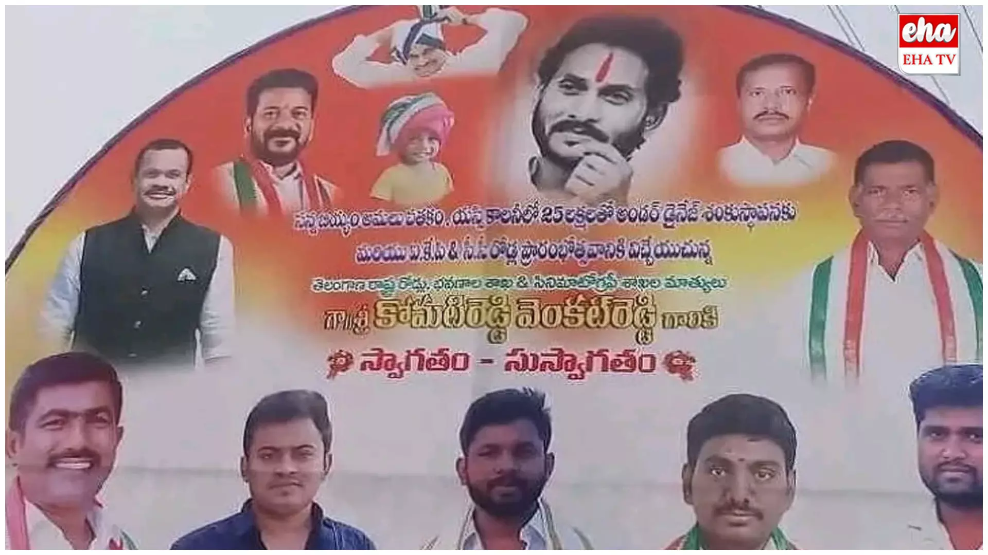 నల్గొండ జిల్లాలో కాంగ్రెస్ నాయకులు ఏర్పాటు చేసిన ఫ్లెక్సీలో ఏపీ మాజీ సీఎం వైఎస్ జగన్ ఫొటోను ముద్రించడం ఆసక్తిగా మారింది. సన్నబియ్యం పంపిణీకి వస్తున్న మంత్రి కోమటిరెడ్డి వెంకటరెడ్డికి స్వాగతం పలుకుతూ స్థానిక నాయకులు ఈ ఫ్లెక్సీని ఏర్పాటు చేశారు. ఈ ఫ్లెక్సీని ప్రజలు ఆసక్తిగా తిలకించారు.