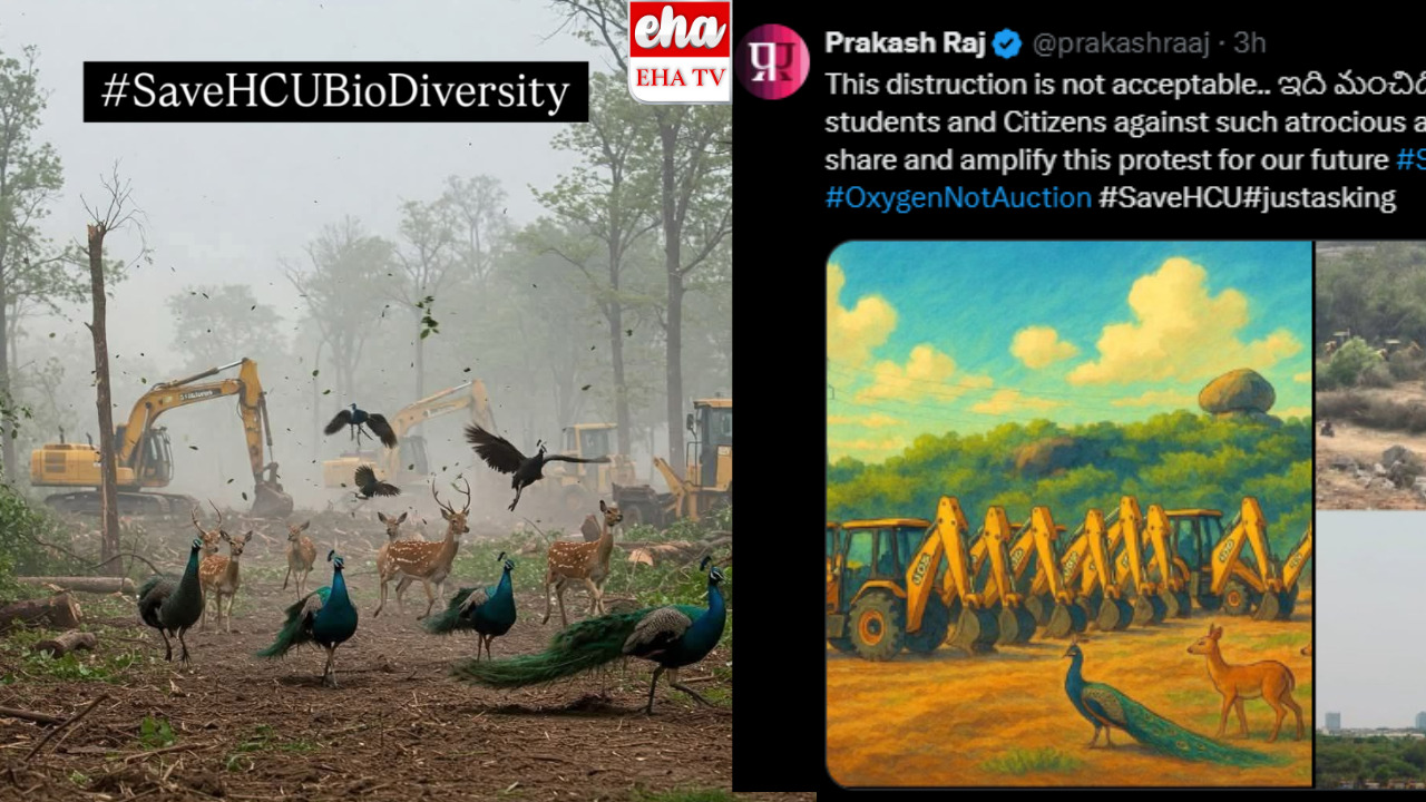 హైదరాబాద్ సెంట్రల్ యూనివర్సిటీ (HCU) భూముల వివాదం కొనసాగుతుండగా ఈ అంశంపై పలువురు రాజకీయ ప్రముఖులు, సినిమా ప్రముఖులు స్పందిస్తున్నారు. సామాజిక అంశాలపై ముందుగా స్పందించే ప్రముఖ నటుడు, రాజకీయ విశ్లేషకుడు ప్రకాష్రాజ్ కూడా ఈ వివాదంపై జస్ట్ ఆస్కింగ్ పేరుతో ఎక్స్లో పోస్టు చేశారు. విద్యాసంస్థలకు కేటాయించిన భూములను వాణిజ్య అవసరాలకు ఉపయోగించడం అన్యాయమని ప్రకాష్ రాజ్ అభిప్రాయపడ్డారు. ''ఈ విధ్వంసం ఆమోదయోగ్యం కాదు.. ఇది మంచిది కాదు .. ఇలాంటి దారుణమైన చర్యకు వ్యతిరేకంగా నేను విద్యార్థులు మరియు పౌరులకు మద్దతు ఇస్తున్నాను.. మన భవిష్యత్తు కోసం ఈ నిరసనను షేర్ చేసి విస్తృతం చేయాలని ప్రతి ఒక్కరినీ అభ్యర్థిస్తున్నాను'' అని ప్రకష్రాజ్ ట్వీట్ చేశారు. అంతేకాకుండా ''ప్రకృతిపై ఈ దుష్ప్రవర్తన ఆపాలి.. తెలంగాణలో పాలిస్తున్న మీ పార్టీ చర్యను మీరు పరిశీలిస్తారా అంటూ రాహుల్గాంధీని ఆయన ఎక్స్వేదికగా ప్రశ్నించారు. టాలీవుడ్ నటి ఈశా రెబ్బ కూడా ఇన్స్టాలో స్పందించారు. సేవ్ హెచ్సీయూ అంటూ విద్యార్థులు చేస్తున్న ఉద్యమానికి ఆమె మద్దతు పలుకుతూ ఇన్స్టాలో స్టేటస్ పెట్టుకున్నారు. మరోవైపు ప్రభుత్వం ఈ ఆరోపణలు ఖండిస్తోంది. ఈ 400 ఎకరాల భూమిలో అంగుళం కూడా యూనివర్సిటీకి చెందింది కాదని.. ఆ స్థలమంతా ప్రభుత్వానిదేనని రేవంత్ రెడ్డి సర్కార్ చెప్తోంది. అయినప్పటికీ విద్యార్థులు, రాజకీయ పార్టీల నుంచి పెద్ద ఎత్తున నిరసనలు, ఆందోళనలు వ్యక్తమవుతున్నాయి. మరోవైపు సేవ్ హెచ్సీయూ అనే హ్యాష్ ట్యాగ్తో విద్యార్థులు ఇన్స్టాలో పోస్టులకు విశేష స్పందన వస్తోంది. జాతీయస్థాయిలో ఈ ఉద్యమానికి పలువురు ప్రకృతి ప్రేమికులు దీనిని ఖండిస్తున్నారు
