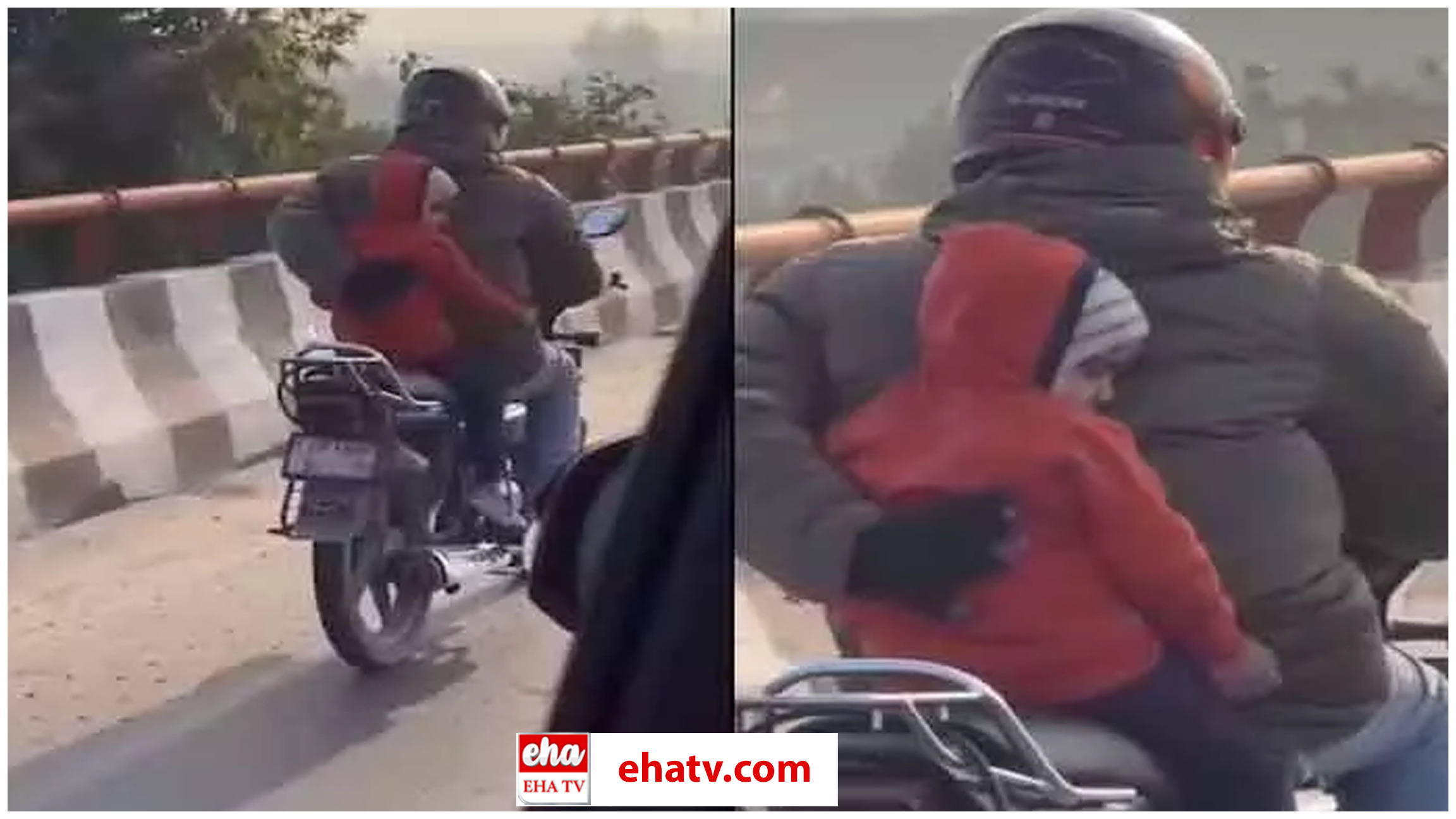 నవమాసాలు మోసిన తల్లికి తన పిల్లలపై ఎంత ప్రేమ ఉంటుందో వారిని కంటికి రెప్పలా కాపాడుకునే తండ్రికీ అంతే ప్రేమ ఉంటుంది. యూపీ(UP)లో ఓ తండ్రి బైక్పై వెళ్తూ వెనకాల కూర్చున్న తన కుమారుడు పడుకోవడంతో పడిపోకుండా ఓ చేత్తో పట్టుకున్న వీడియో వైరలవుతోంది. అలా ఓ చేత్తో కొడుకును మరొక చేత్తో హ్యాండిల్ పట్టుకుని బైక్ నడిపారు. అయితే, ఇందులో ప్రేమ ఎంత ఉందో.. ప్రమాదమూ అంతే ఉందని నెటిజన్లు ట్వీట్స్ చేస్తున్నారు.