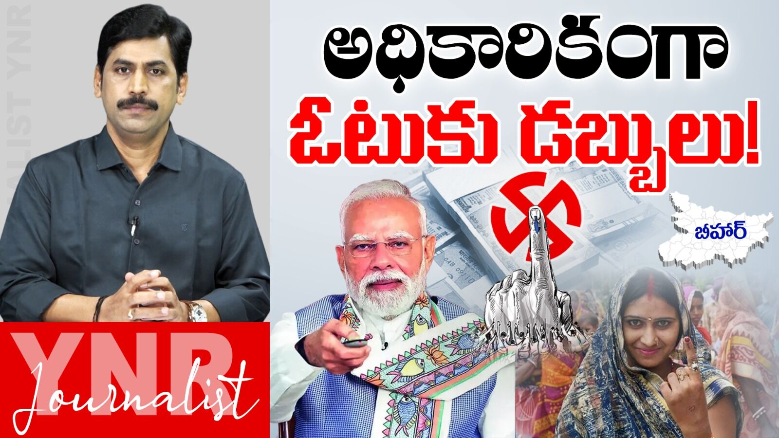బీహార్లో ఇమ్మీడియట్ గా షెడ్యూల్ రాబోతుంది రేపో మాపో లాంటి వాతావరణం ఉంది. అక్కడ ఓటర్ల జాబితా సవరణ దానికి సంబంధించి దేశవ్యాప్తంగా జరిగిన చర్చ, ఓటర్ల జాబితా సవరణ సందర్భంగా ఎలక్షన్ కమిషన్ వ్యవహరించిన శైలి, వీటన్నిటిని పార్టీలు, వ్యక్తులు, సంస్థలు జర్నలిస్టులు మాత్రమే కాదు, సుప్రీం కోర్టు కూడా తప్పుపట్టడం చూశాం. ఇప్పుడు బీహార్లో అధికారికంగా, లీగల్ గా ఓట్ల కొనుగోలు జరుగుతోంది, ఓట్ల కొనుగోలుకు శ్రీకారం చుట్టింది ఈ దేశ ప్రధానమంత్రి నరేంద్రమోదీ. నరేంద్రమోదీ అధికారికంగా బీహార్లో ప్రజల డబ్బుతో, ప్రజల ఓట్లని కొనుగోలు చేయడానికి, సంబంధించిన పథకానికి నిన్న శ్రీకారం చుట్టారు. ఇంకొక నెల రోజుల్లో ఎన్నికలు జరగబోతున్నాయి బీహార్లో, దాదాపు 15-20 సంవత్సరాలుగా నితీష్ కుమార్ బీహార్ కి ముఖ్యమంత్రిగా ఉన్నారు. ఆల్మోస్ట్ టూ డెకేడ్స్ గా ఆయన ముఖ్యమంత్రిగా ఉన్నారు, ఆయనే కంటిన్యూ అవుతూ వస్తున్నారు, మధ్యలో చిన్న చిన్న గ్యాప్స్ వచ్చినప్పటికి 20 సంవత్సరాలుగా, లేని ఒక కార్యక్రమాన్ని నెల రోజులు పదవిలో నుంచి దిగిపోవడానికి, నెల రోజుల ముందు ఆయనక ఒక ఆలోచన వచ్చింది. ఆ ఆలోచన ప్రకారం ఆ పథకానికి రూపకల్పన చేశారు. ఏంటి ఆ పథకం ముఖ్యమంత్రి మహిళా రోజ్గార్ యోజన కింద మహిళలకు ఉపాధి కల్పించడం ఆ పథకం లక్ష్యం.ఈ అంశంపై సీనియర్ జర్నలిస్ట్ 'YNR' విశ్లేషణ..!