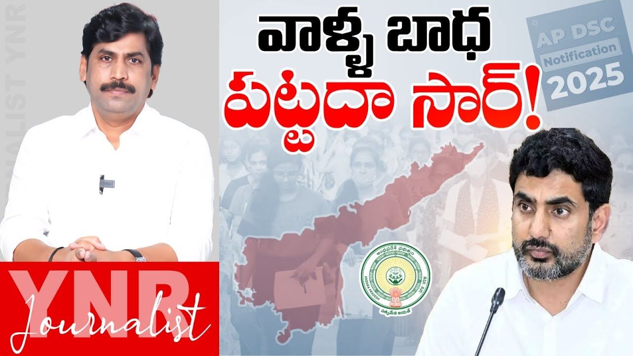 డీఎస్సీ వాయిదా వేయండి మహాప్రభో అంటూ ఆంధ్రప్రదేశ్(Ap)లో నిరుద్యోగులు ఆందోళన చేస్తున్నరు. ప్రభుత్వానికి విజ్ఞప్తి చేస్తున్నారు. ఈ అంశంపై రాజకీయపార్టీలు ప్రజాసంఘాలు, జర్నలిస్టుల కూడా విజ్ఞప్తి చేస్తున్నారు. టెట్(TET)కు, డీఎస్సీ(DSC)కి సమయం ఇవ్వాలని కోరుతున్నారు. ప్రభుత్వం దానిని అడ్రెస్ చేయడానికి ఎందుకో ఆసక్తి చూపడం లేదు. టెట్ నిర్వహించకుండా డీఎస్సీ నోటిఫికేషన్ ఎలా ఇస్తారని ప్రశ్నిస్తున్నారు. గతంలో పేపర్ కఠినంగా ఉండడంతో టెట్ క్వాలిఫై కాలేకపోయారు. 50 శాతం మంది టెట్కు క్వాలిఫైకాలేకపోతున్నారు. ఏడేళ్ల తర్వాత డీఎస్సీ పడిందని ఈ పరీక్ష రాసి ఉద్యోగం సాధించాలని ఎంతో మంది ఆసక్తితో ఉన్నారన్నారు. ఎన్నికల ముందు టీడీపీ నేతల హామీలను నమ్మి కూటమికి ఓట్లు వేశామని నిరుద్యోగులు చెప్తున్నారు. మెగా డీఎస్సీ వస్తుందని లక్షలాది మంది ఎదురు చూశారు. కానీ టెట్కు, డీఎస్సీ 60 రోఉల సమయం ఉండాలనే నిబంధనను పాటించడం లేదని వారు వాపోతున్నారు. ఈ అంశంపై సీనియర్ జర్నలిస్ట్ 'YNR' విశ్లేషణ..