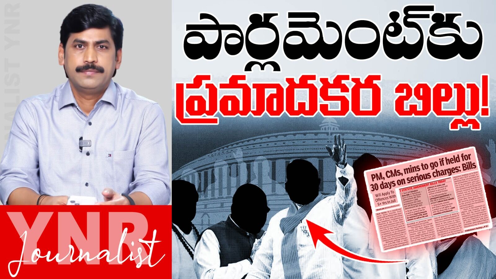 ఈ నేపథ్యంలో ఇప్పుడు కేంద్ర ప్రభుత్వం తీసుకురాబోతున్న ఈ చట్టం, దేశంలో ప్రతిపక్షాలని టార్గెట్ చేయబోతుంది. భారతీయ జనతా పార్టీకి సంబంధించిన ముఖ్యమంత్రులు, భారతీయ జనతా పార్టీకి సంబంధించిన మంత్రులు ఎవరైనా తప్పులు చేస్తే 30 రోజుల కంటే ఎక్కువ జైల్లో ఉండే పరిస్థితి ఉండదు, ఎందుకంటే అన్ని వ్యవస్థలని భారతీయ జనతా పార్టీ, కేంద్ర ప్రభుత్వం మేనేజ్ చేస్తున్నాయి, ఇలాంటి ఇంప్రెషన్ ఉంది. అదే ప్రతిపక్షాలకు సంబంధించిన వాళ్ళు ఎక్కడైనా, పదవుల్లో అధికారంలో ఉన్న సమయంలో వాళ్ళు మాత్రం కేసుల పాలై జైలుకి వెళ్లి పదవులని పోకొట్టుకోవాల్సి వస్తుంది. ఇది రాజకీయ పరంగా దుర్వినియోగం అయ్యే ప్రమాదం చాలా ఎక్కువగా ఉంది. పైగా ముఖ్యమంత్రిగానో, మంత్రిగానో, పదవుల్లో ఉన్నవాళ్ళు ఎవరో దయాదాక్షిణ్యాలపై ఆ పదవుల్లోకి వచ్చిన వాళ్ళు కాదు, ప్రజల మద్దతుతో, ప్రజల ఓట్లతో, ప్రజల అంగీకారంతో, ప్రజలు కోరుకుంటే ఆ పదవిలోకి వచ్చిన వాళ్ళు కాబట్టి, వాళ్ళ పదవి తొలగించడం అనేది, చట్ట కోర్టులు వేసే శిక్షల ఆధారంగా ఉండకూడదు లాంటి ఒక చర్చ జరుగుతోంది.ఈ అంశంపై సీనియర్ జర్నలిస్ట్ 'YNR' విశ్లేషణ..